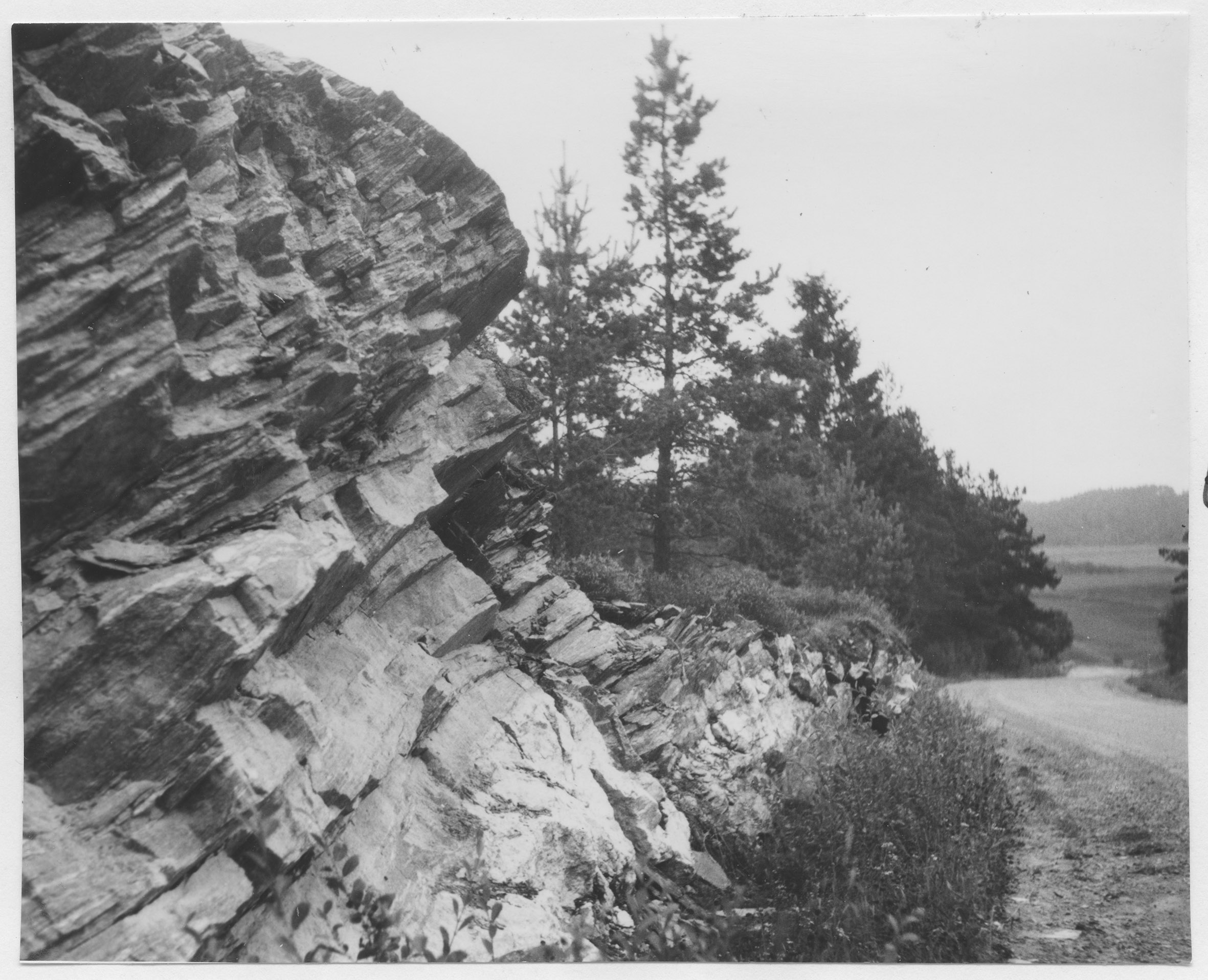 Beskrivning: Väster om Hökedalen (vägen till Kornsjö). Sprängning i skiffrig bergart.