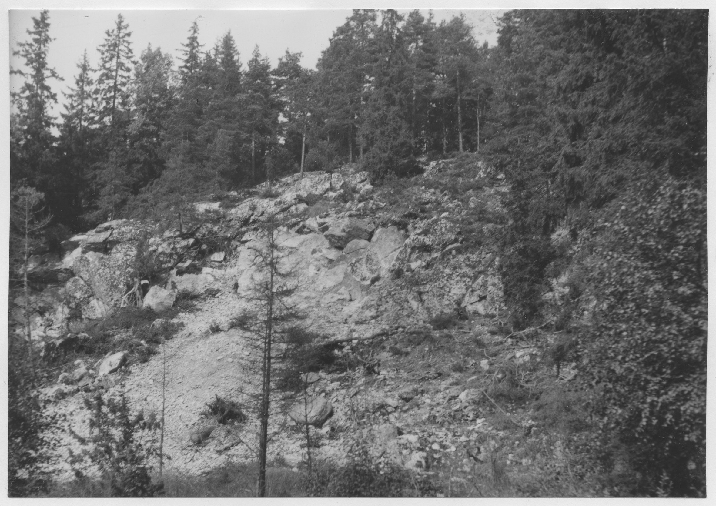 Beskrivning: Väster om Hökedalen och strax före avtagsvägen till Töftedal med kvartsitsbrott intill vägen.