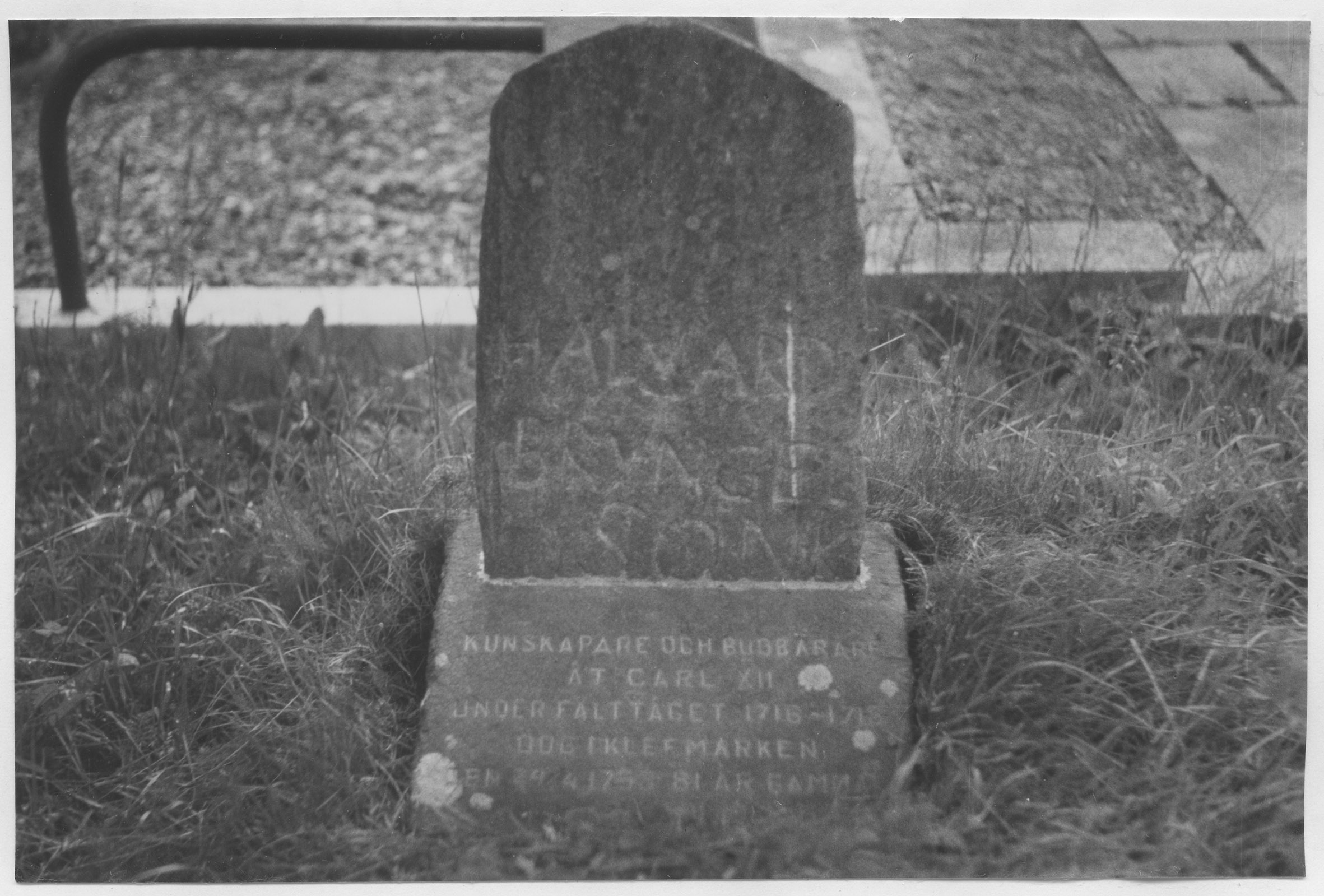Beskrivning: Minnessten: Halvard Bryngelson, död 1753, 81 år gammal.