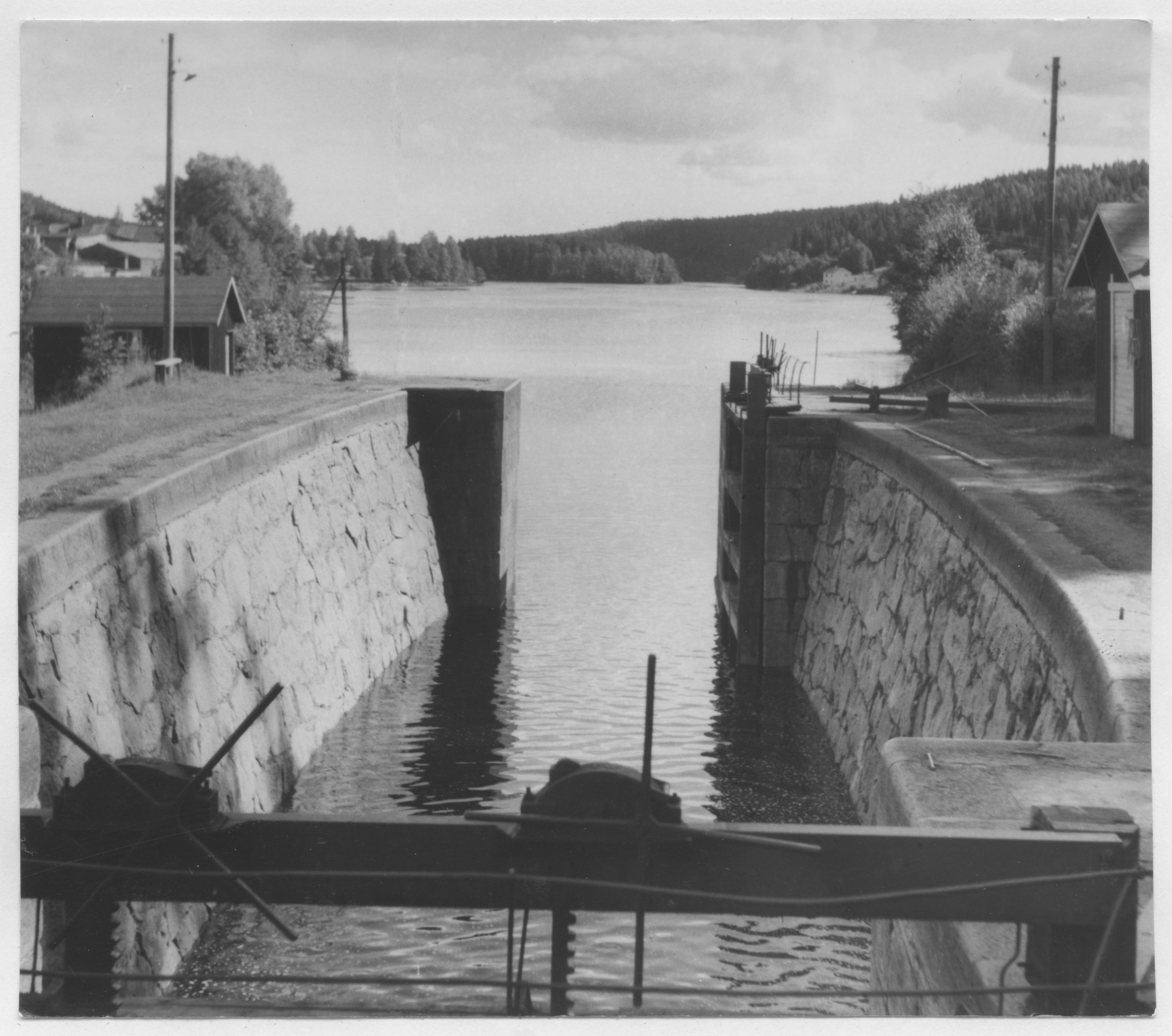 Beskrivning: Slussen vid Mustadfors mot S och N.
