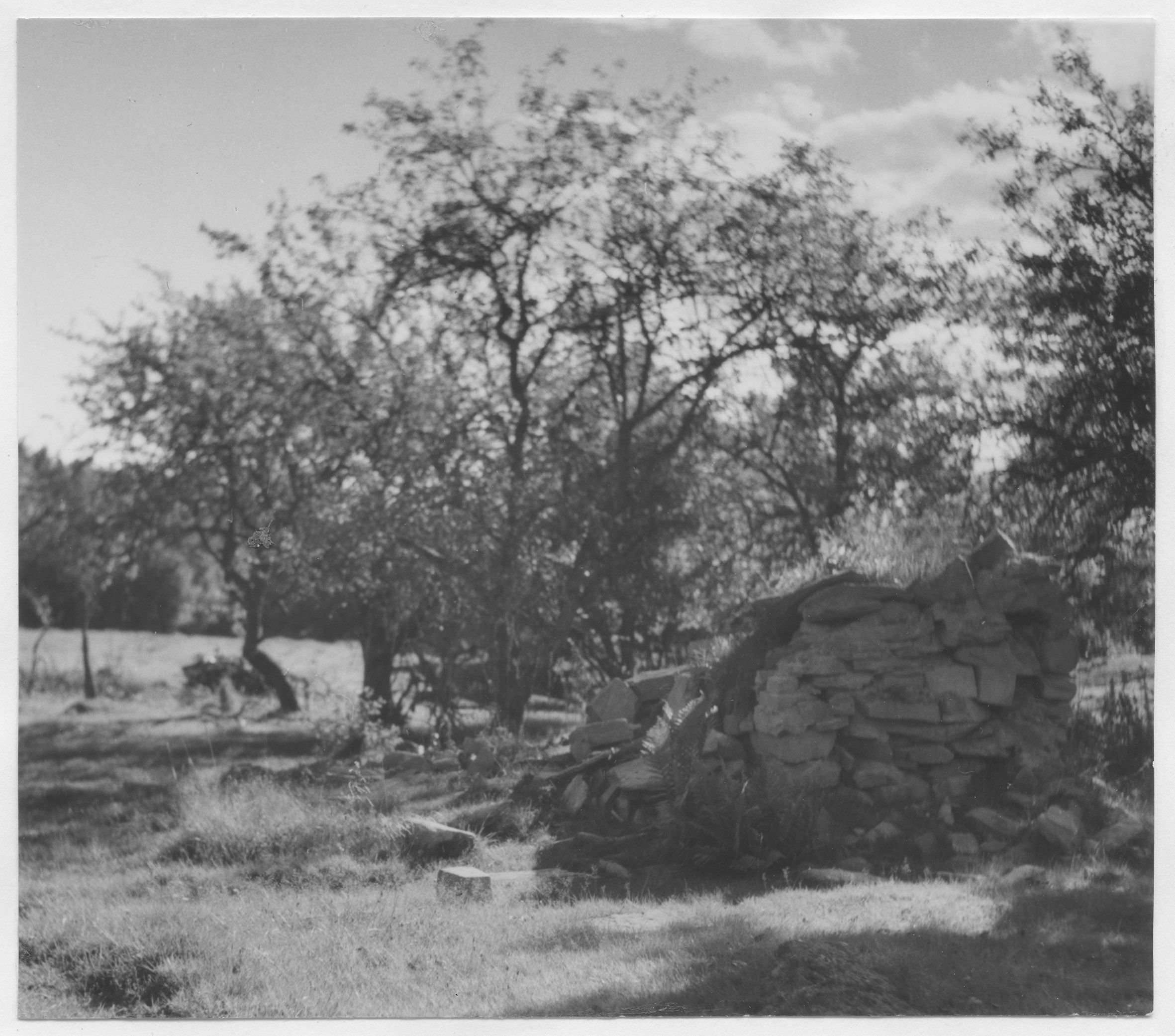 Beskrivning: Beskrivning: Ödelagt torpställe V om kullen. Fruktträd, hassel, ask, lönn, ek, haml.rönn, Nardus.