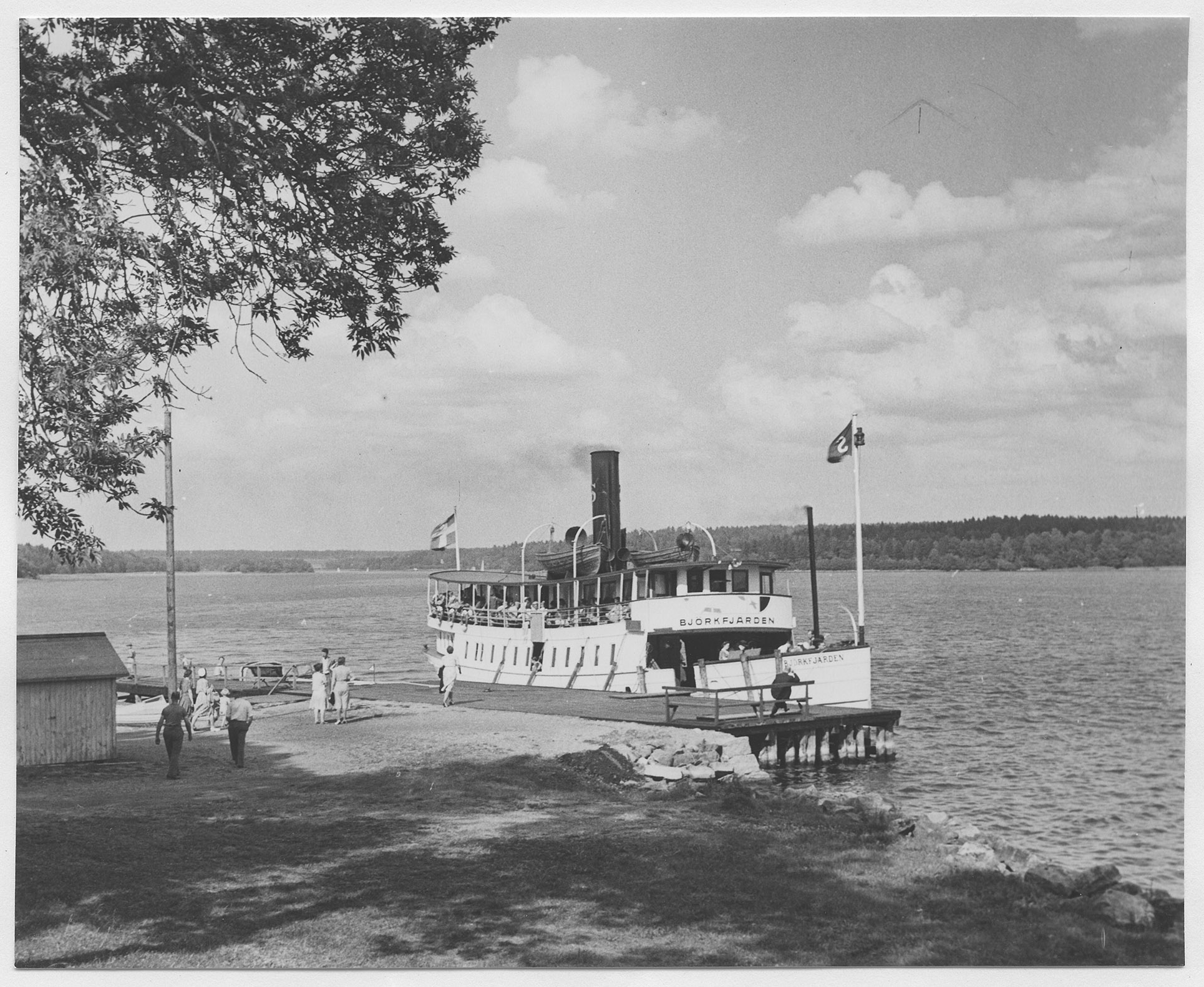 Titel: Båt Sigtuna-Skokloster Slottet från vattnet och Skokloster brygga