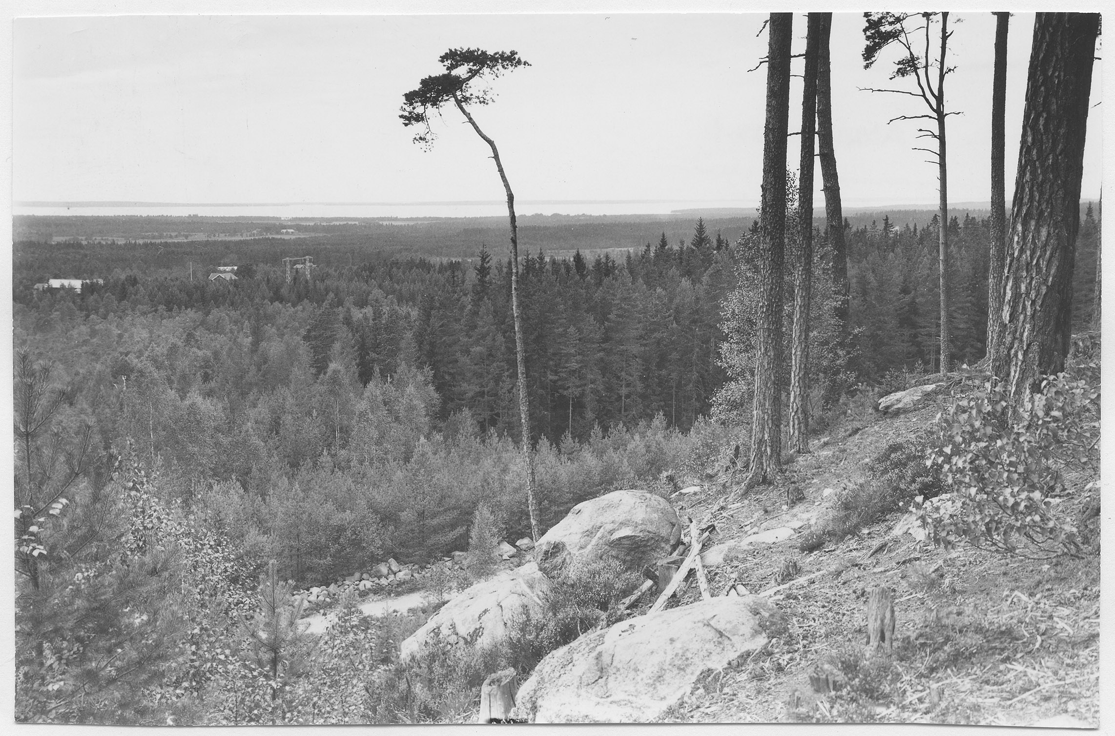 Beskrivning: Landskap vid Finnerödja station. I fonden sjön Skagern.