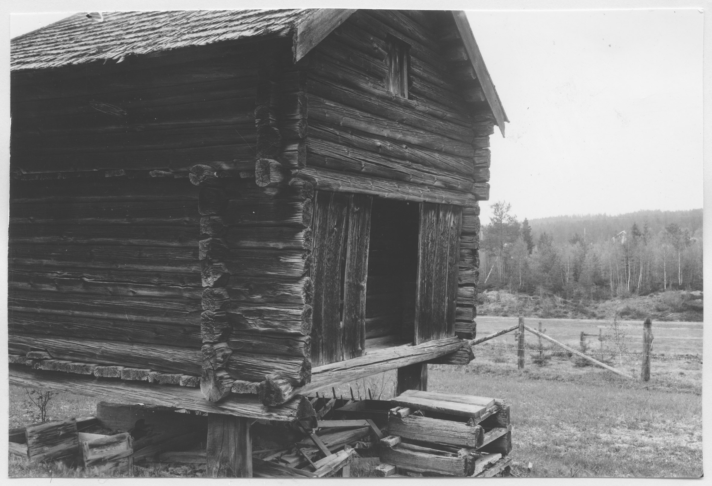Beskrivning: Överhogdal kyrkby. Ålderdomlig stolpbod.