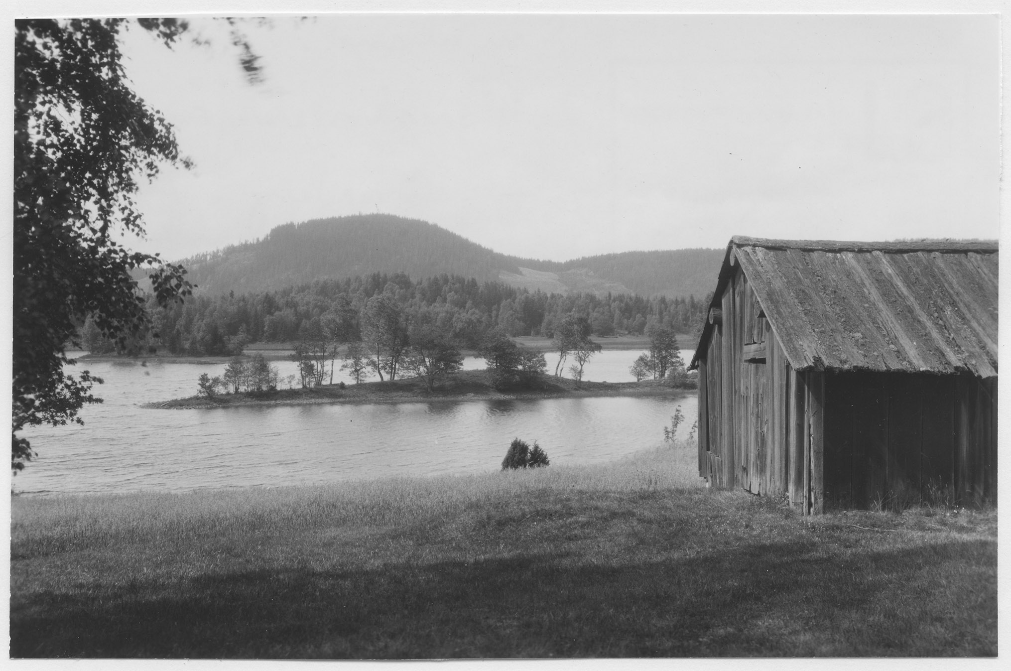Beskrivning: Algustorpsjön och Isaberg, i förgrunden gammal spiksmedja.