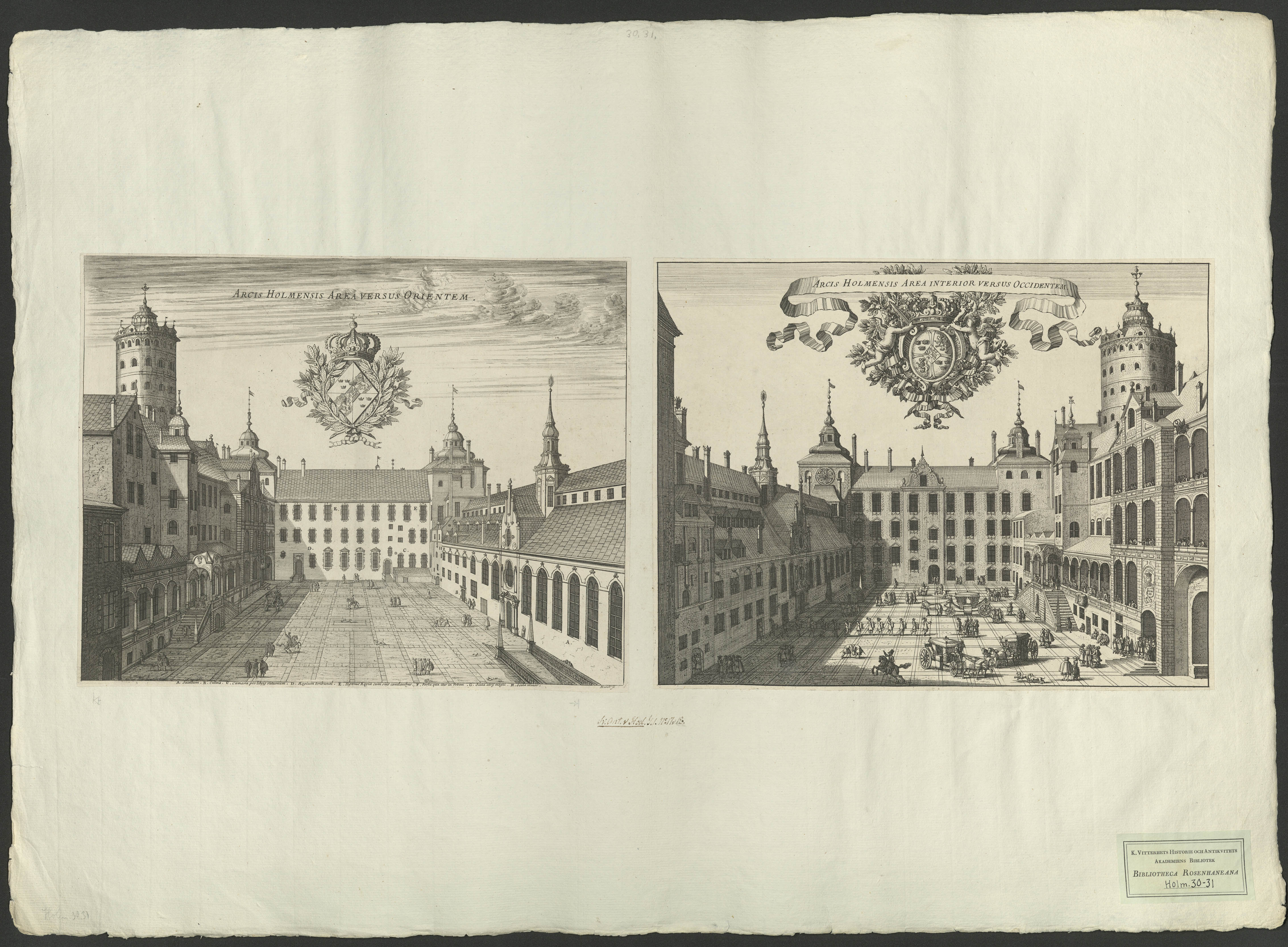 Stockholms gamla slotts borggård från väster || Stockholms gamla slotts borggård från öster