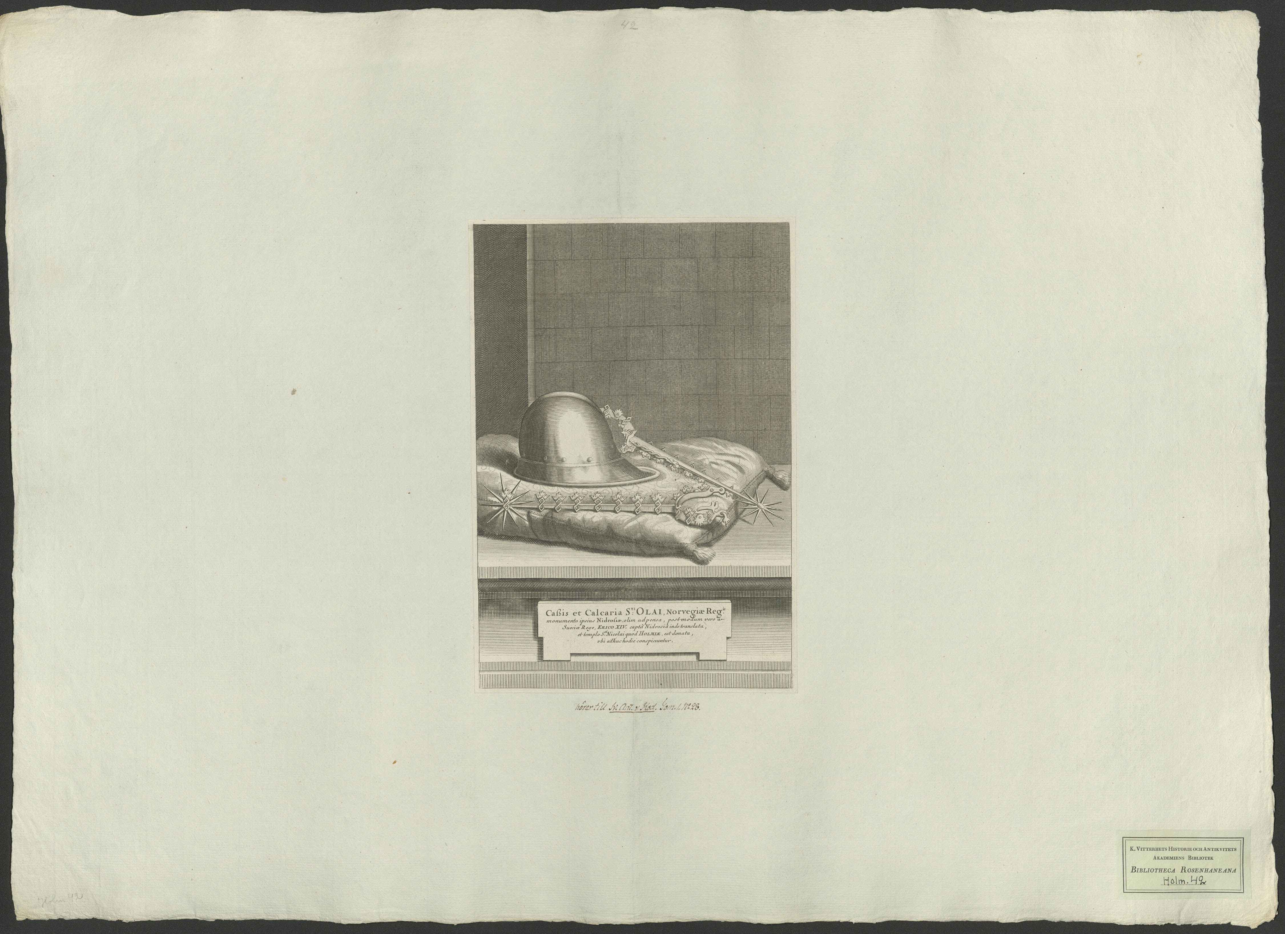 Den norske konungen Olof den heliges hjälm och sporrar, minnesmärken som fordom funnos i Trondheim men som sedan av den svenska konungen Erik XIV vid Trondheims erövring fördes därifrån och överlämnades till Storkyrkan i Stockholm, där de ännu finnas att