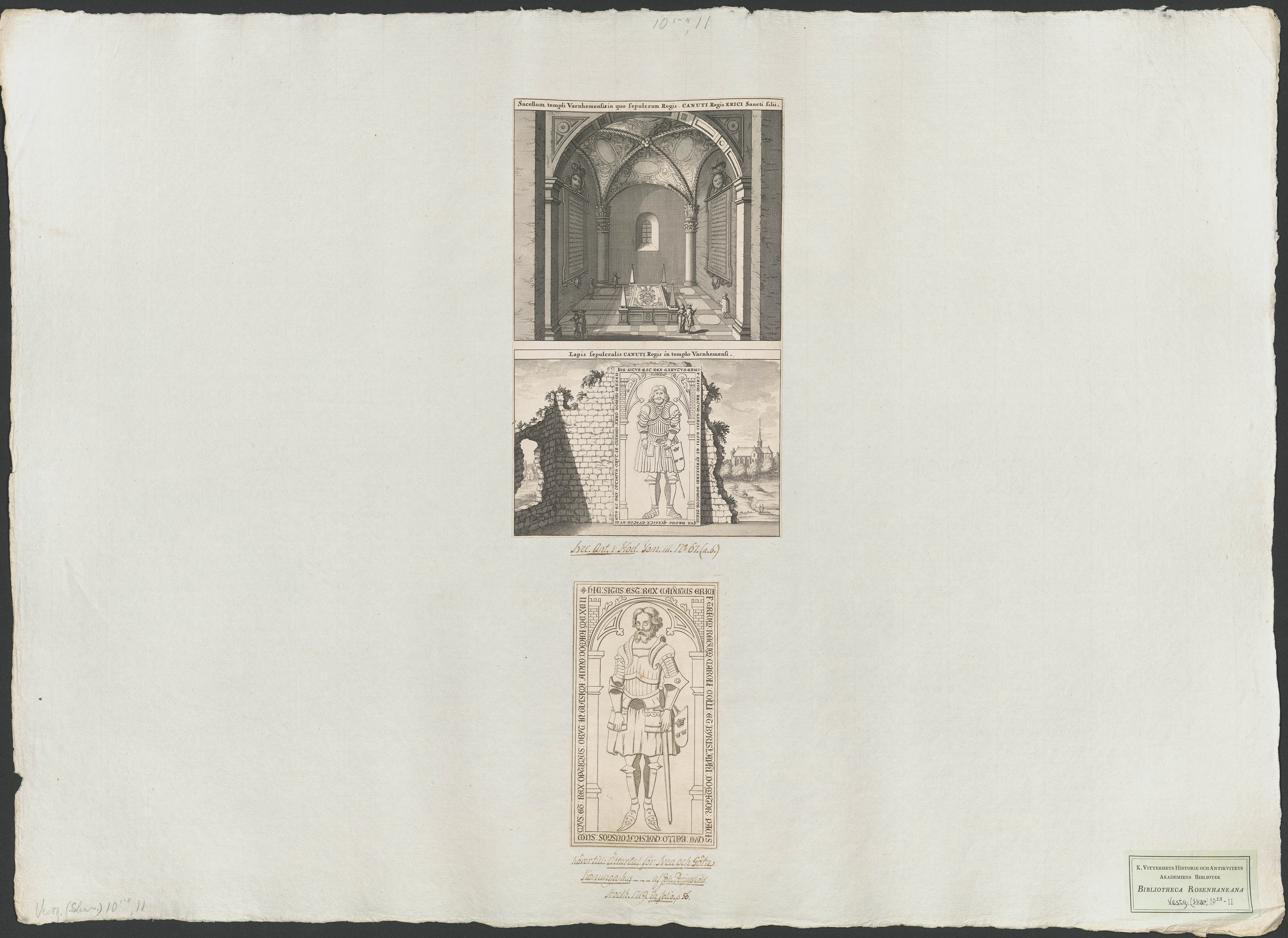 Beskrivning: 1 grafiskt bl. : 1 tryckt ark : Påskrift: "Svec. Ant. & Hod. Tom. III. No 67(a,b)." Påskrift: "hörer till: Ättartal för Svea och Göta Konungahus. Af Joh. Peringskiöld. Stockholm 1719 in folio p. 56"