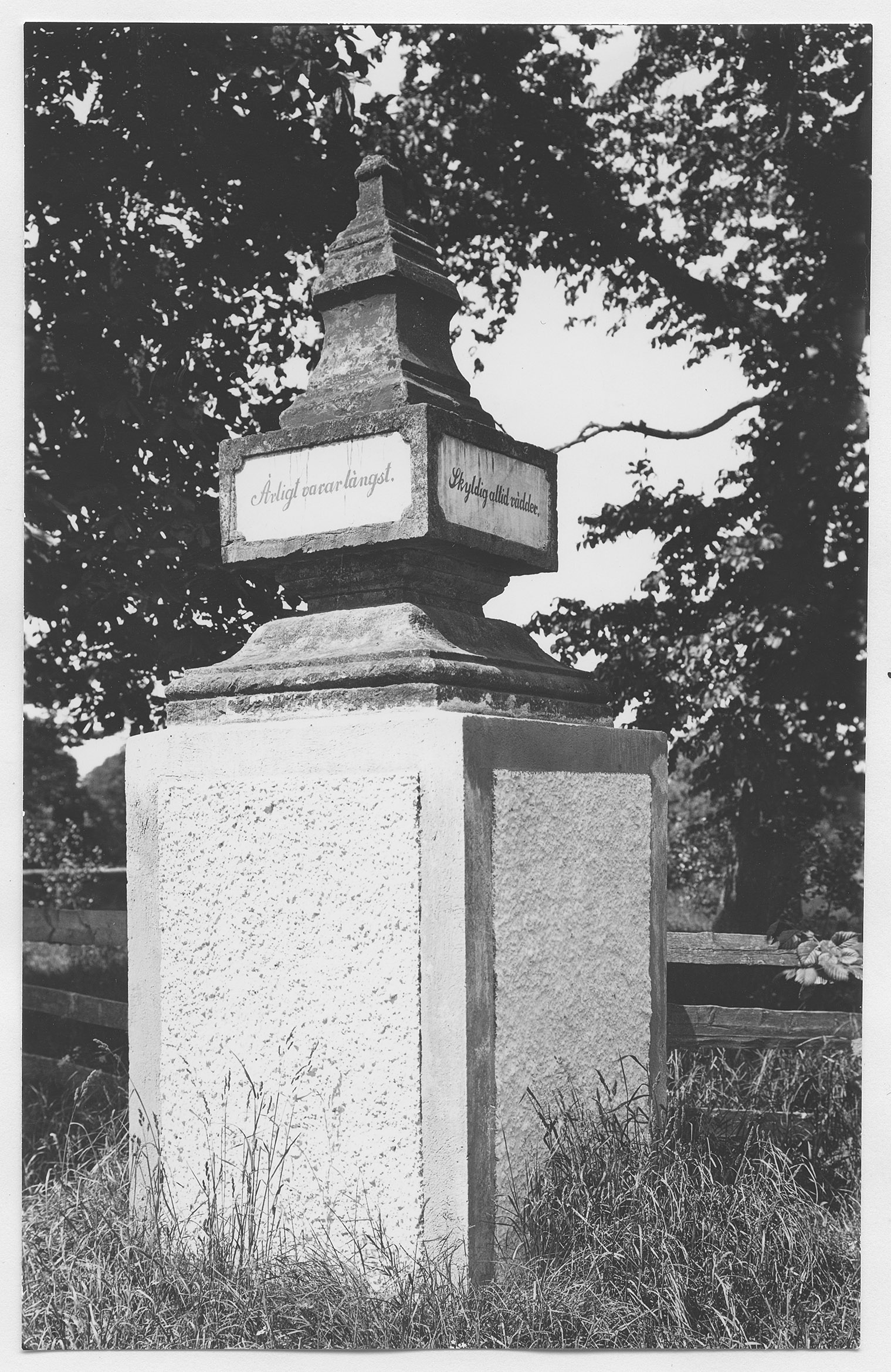 Dagsnäs slott, murad grindstolpe med uppbyggliga tänkespråk