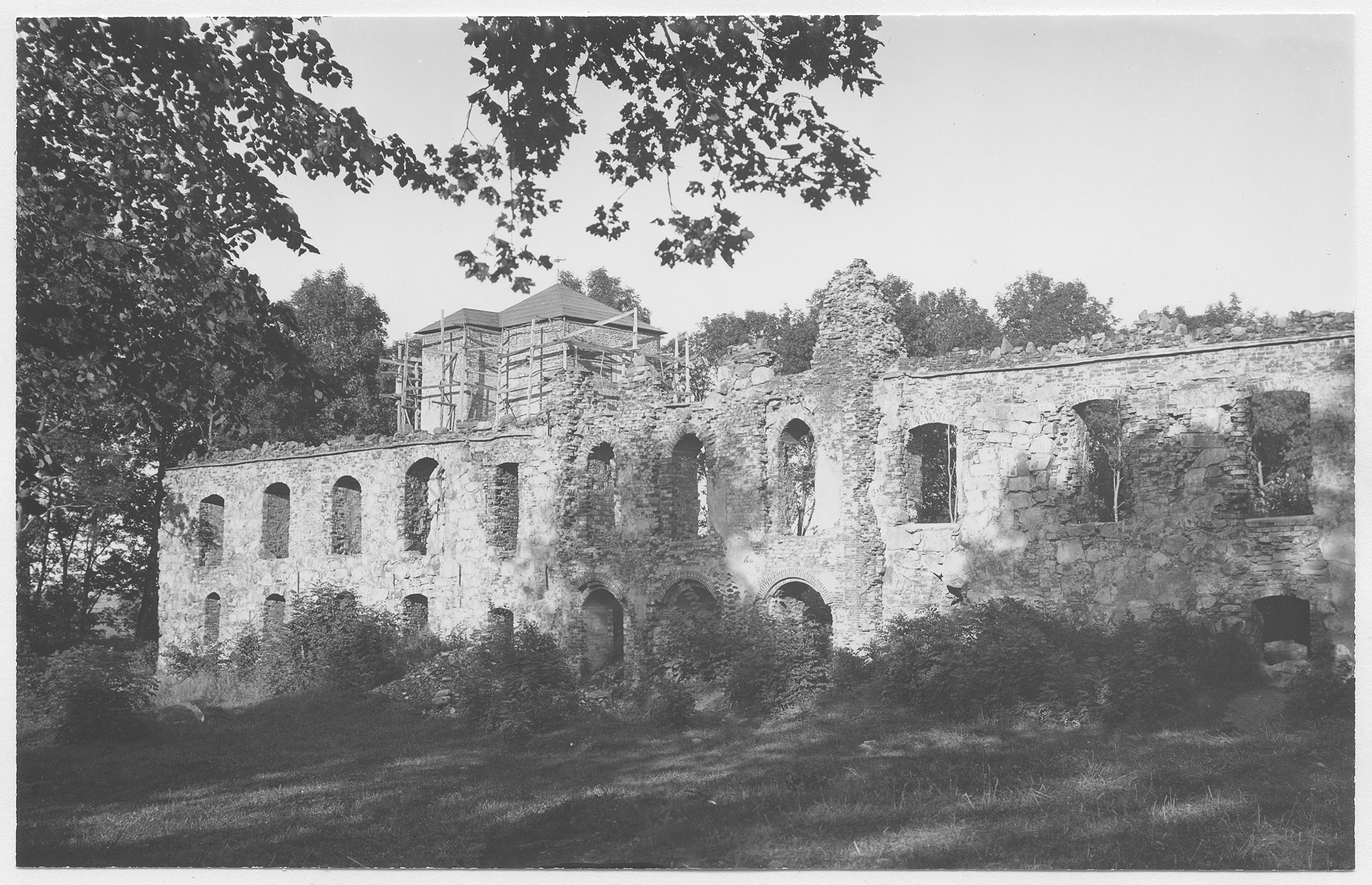 Beskrivning: Slottsruinen under restaurering.