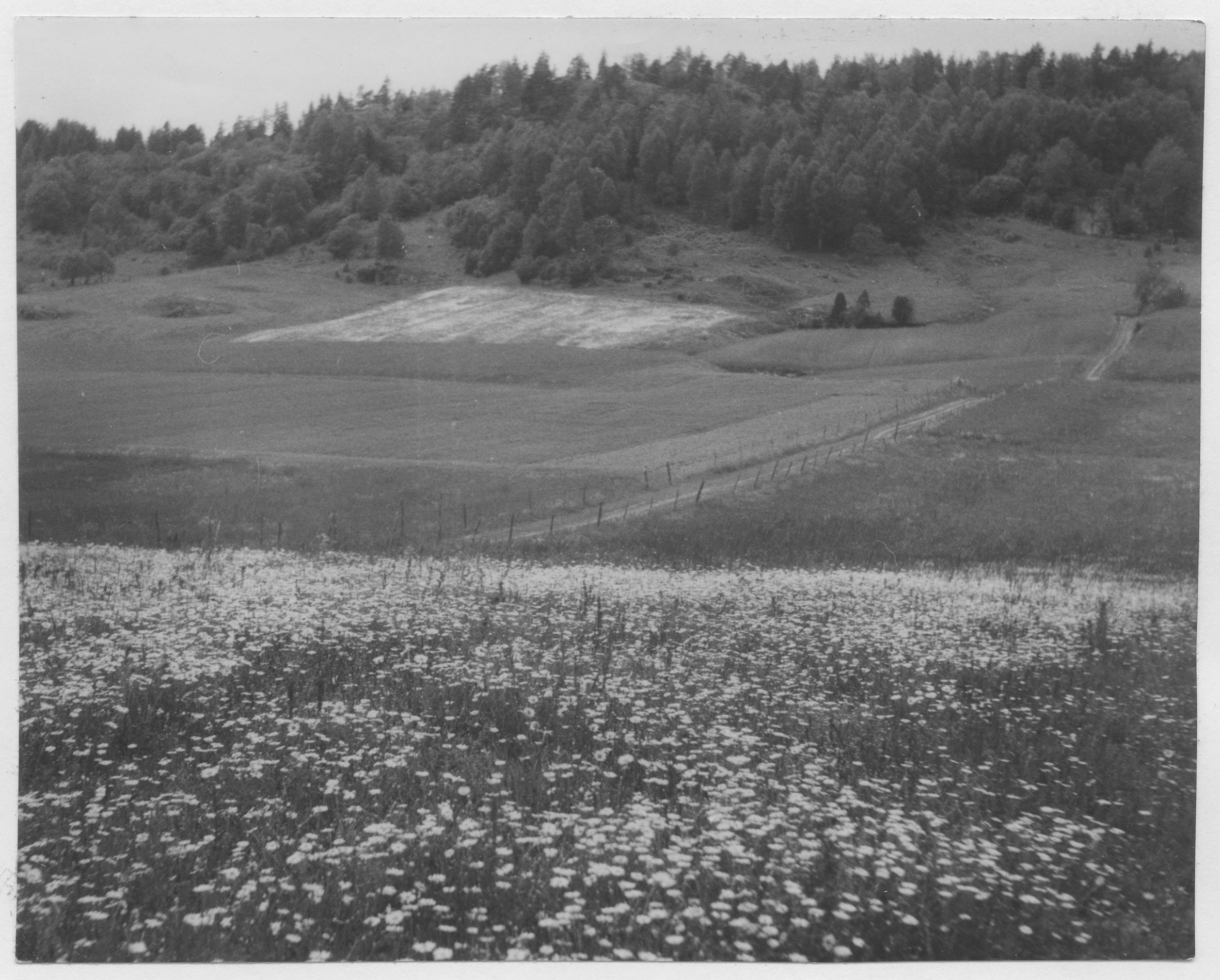 Beskrivning: Gesätersdalen med skönt blomstrande trädor.