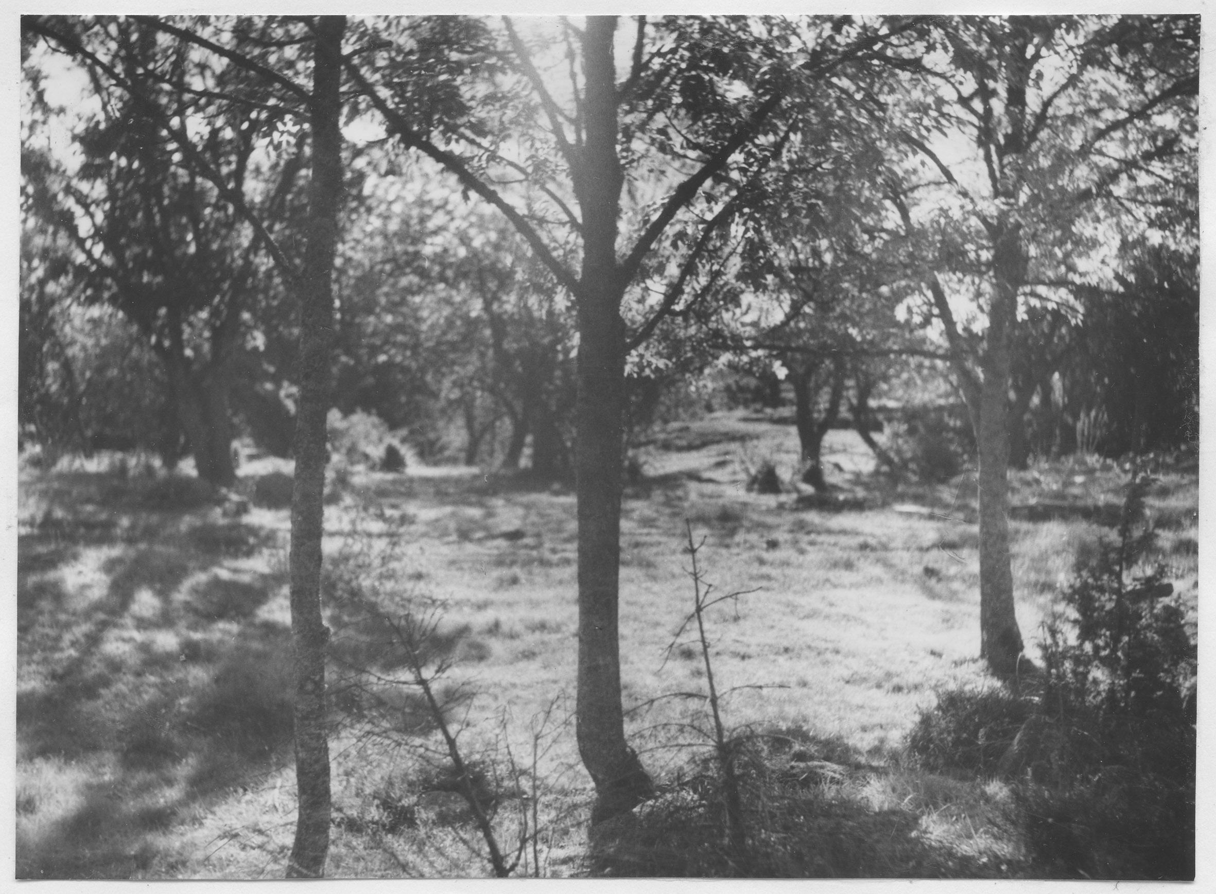 Beskrivning: Ödelagt torpställe V om kullen. Fruktträd, hassel, ask, lönn, ek, haml.rönn, Nardus.
