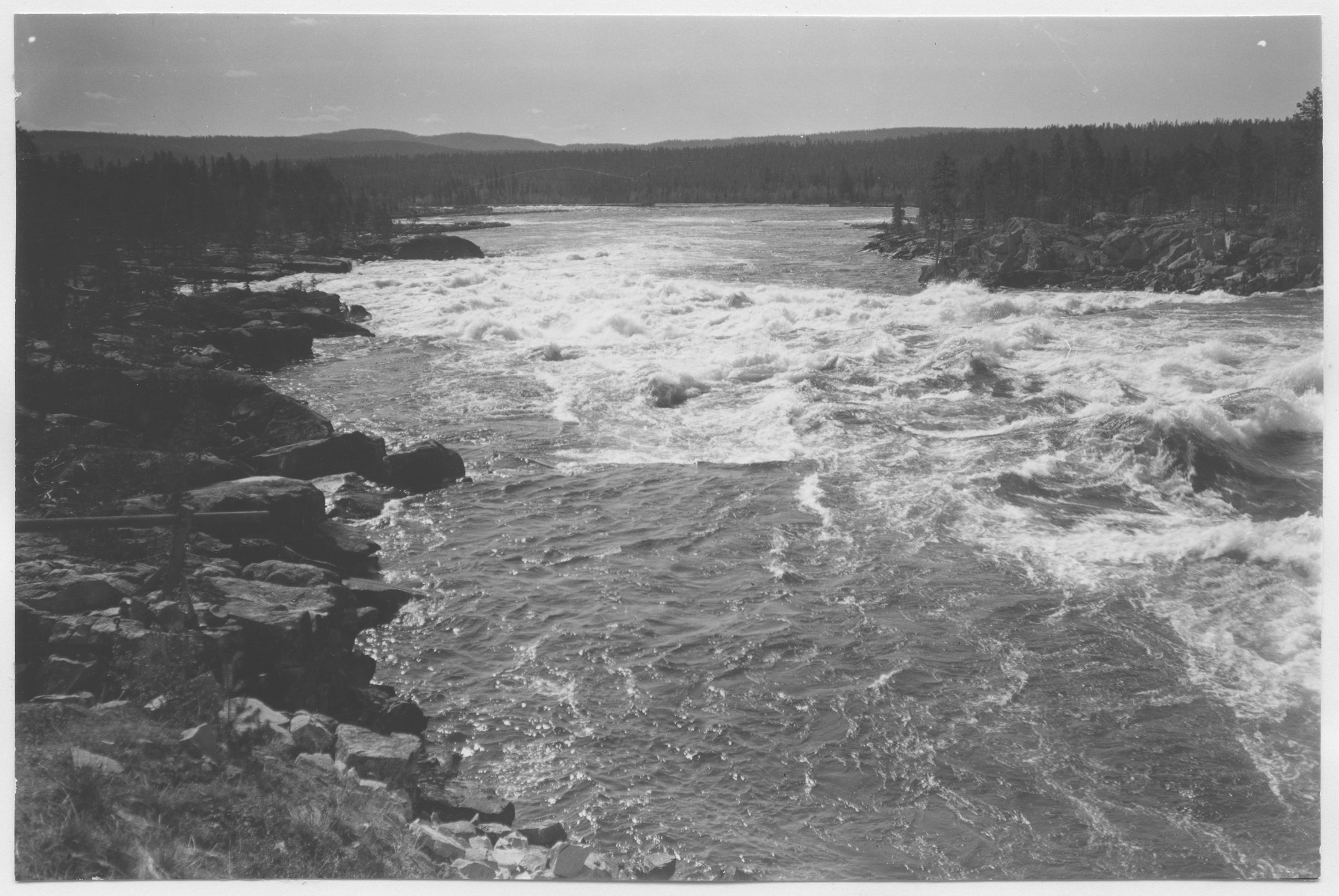 Beskrivning: Lilla Luleälv betraktad från järnvägsbron Ö. Landfästet mot S.