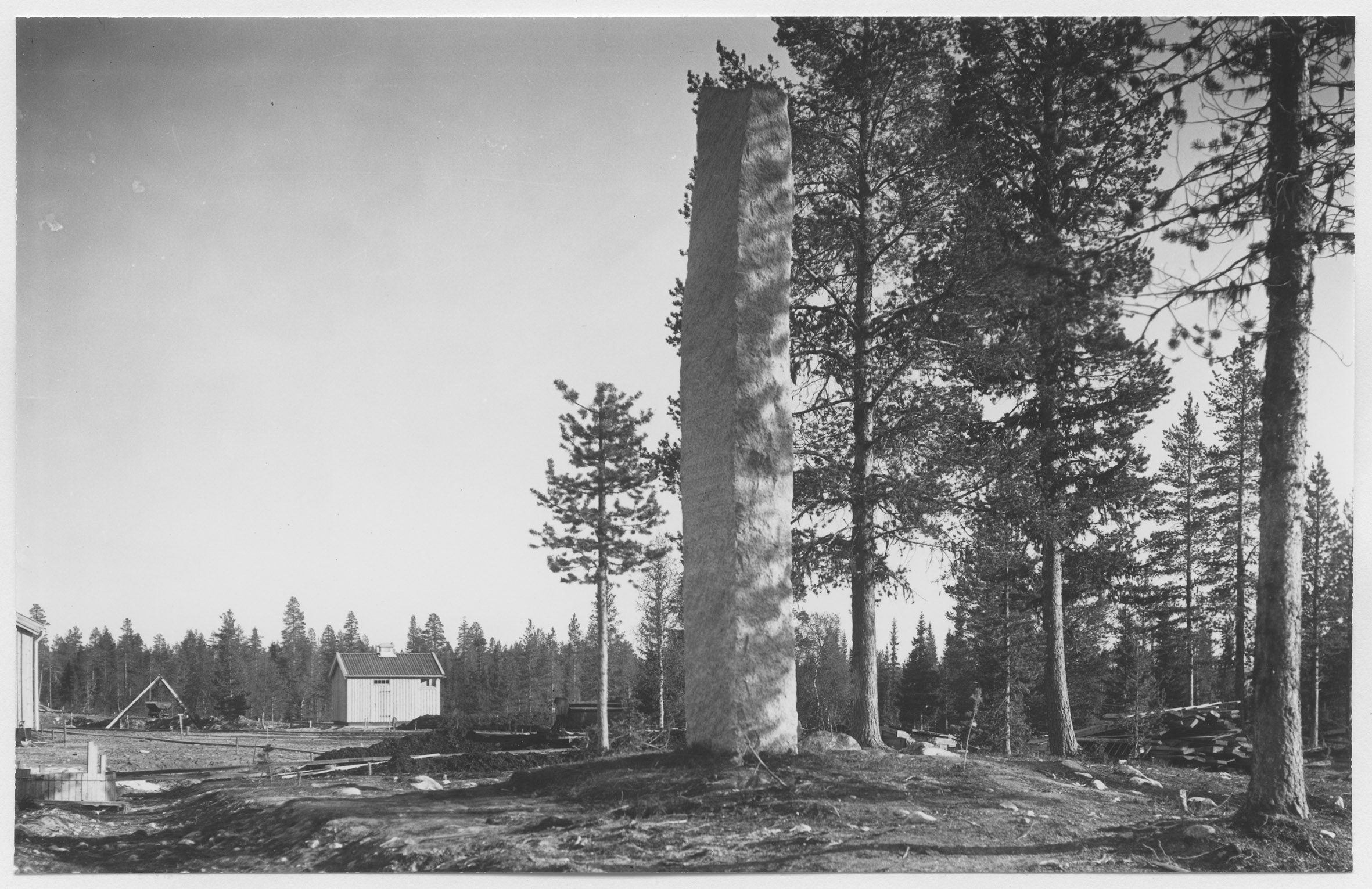 Beskrivning: Minnessten daterad 26/9 1936 till minne av när SJ:s dåvarande generaldirektör Axel Granholm symboliskt drog åt bulten i den sista skarven i Inlandsbanan den 26 september 1936 vid en håll- och lastplats som anlagts 1935 vid byn Kåbdalis.