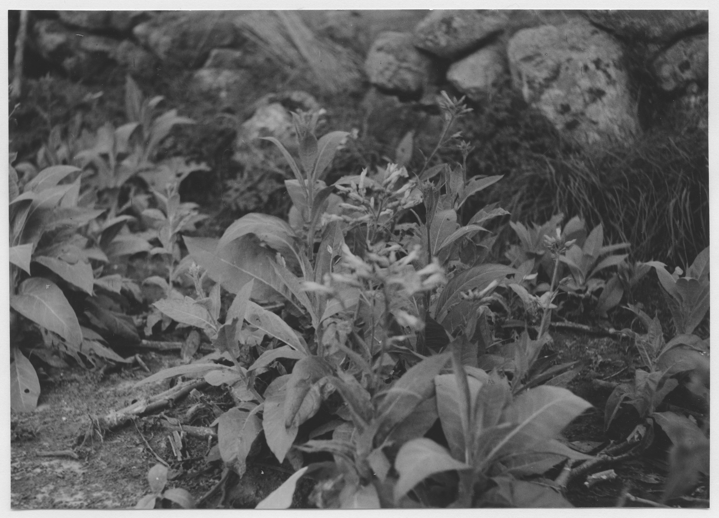 Beskrivning: Tobaksodling. Kvarlämnade fröplantor