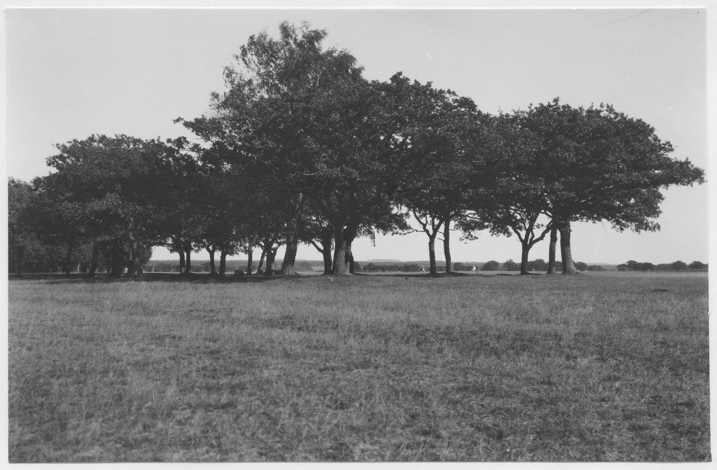 Beskrivning: Landskap invid gränsen mellan Everlöv och Veberöd socknar. Under ekarna utbreder sig "Moslätten".