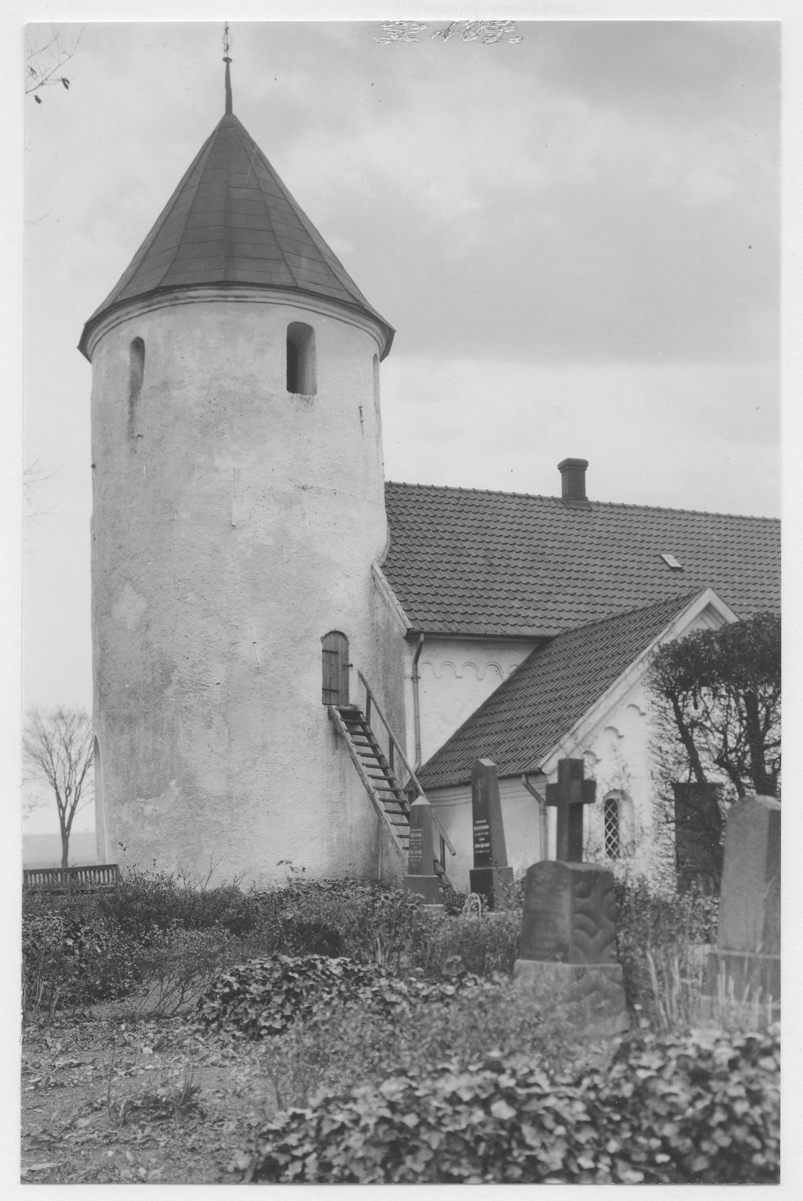 Beskrivning: Kyrkan med rundtorn från 1100-talet