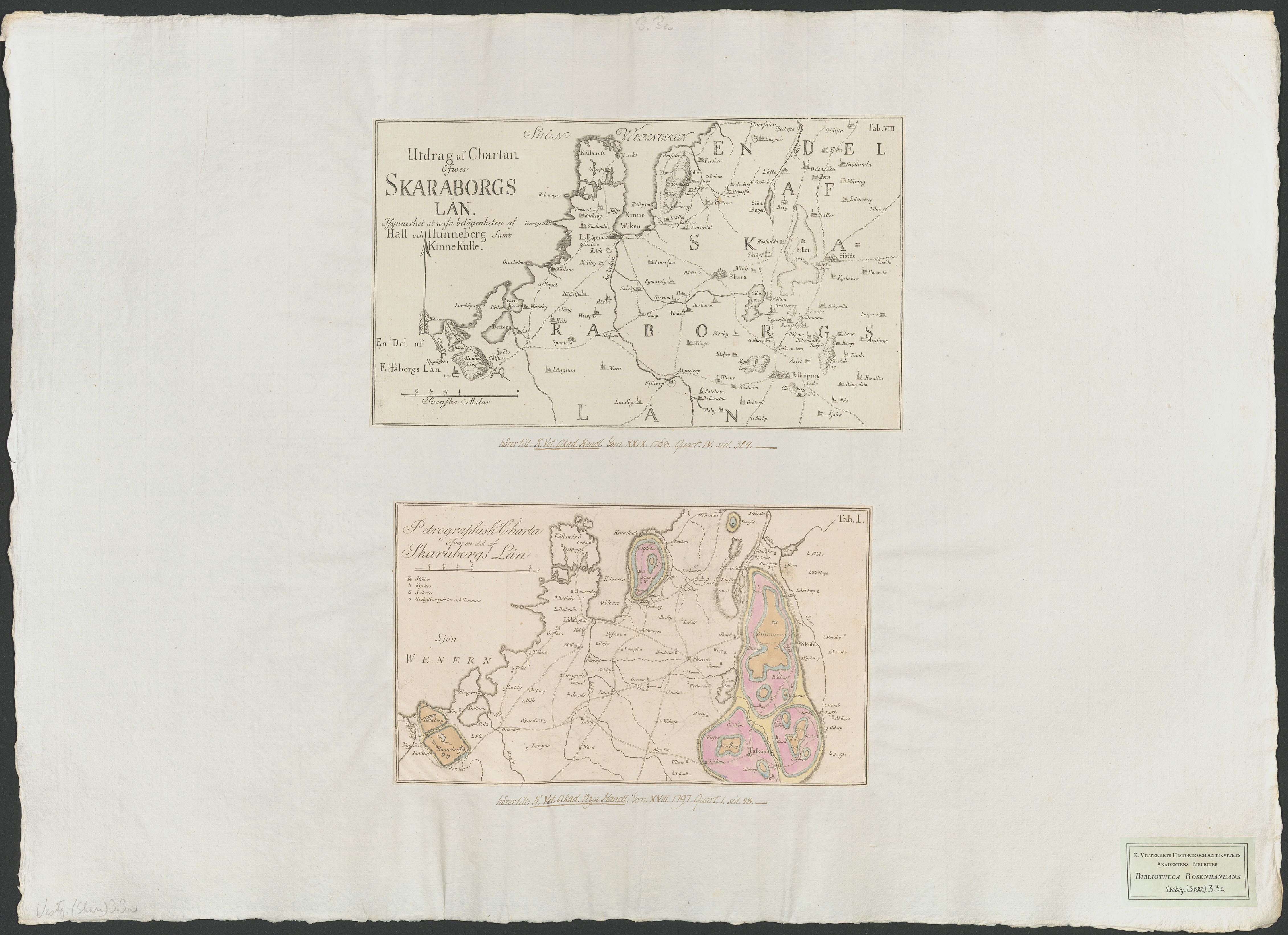 Petrographisk charta öfver en del af Skaraborgs län. || Utdrag af Chartan öfwer Skaraborgs län i synnerhet at wisa belägenheten af Hall och Hunneberg samt Kinne Kulle.