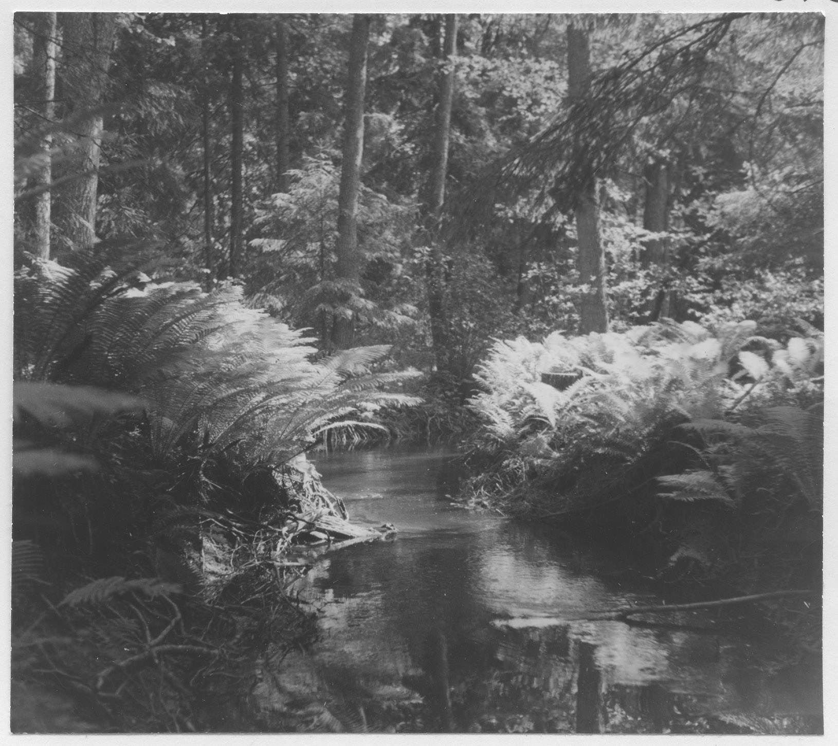 Beskrivning: Ormbunkar vid ån.