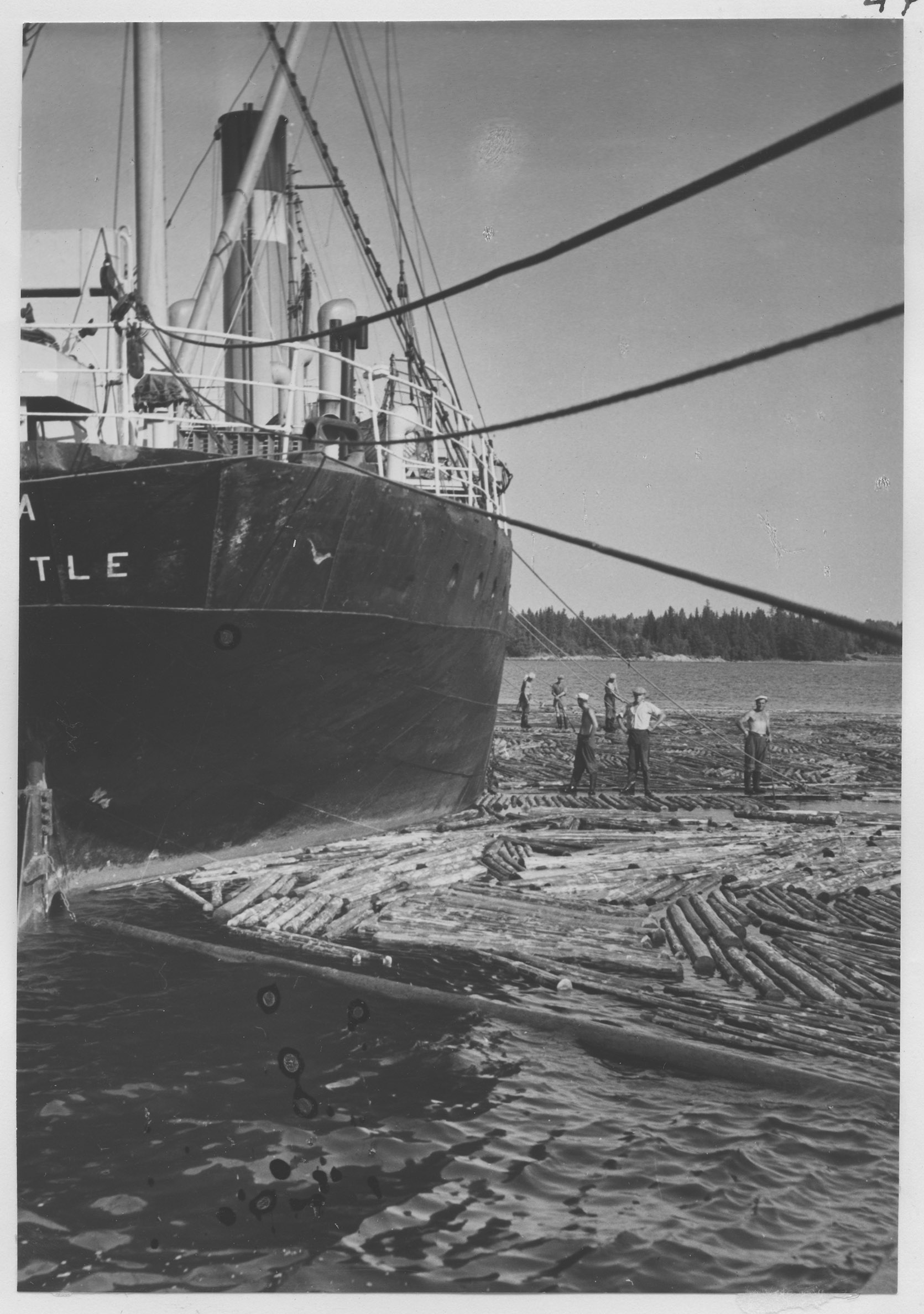 Beskrivning: Beskrivning: Lastning av props (timmerlastning på båt).