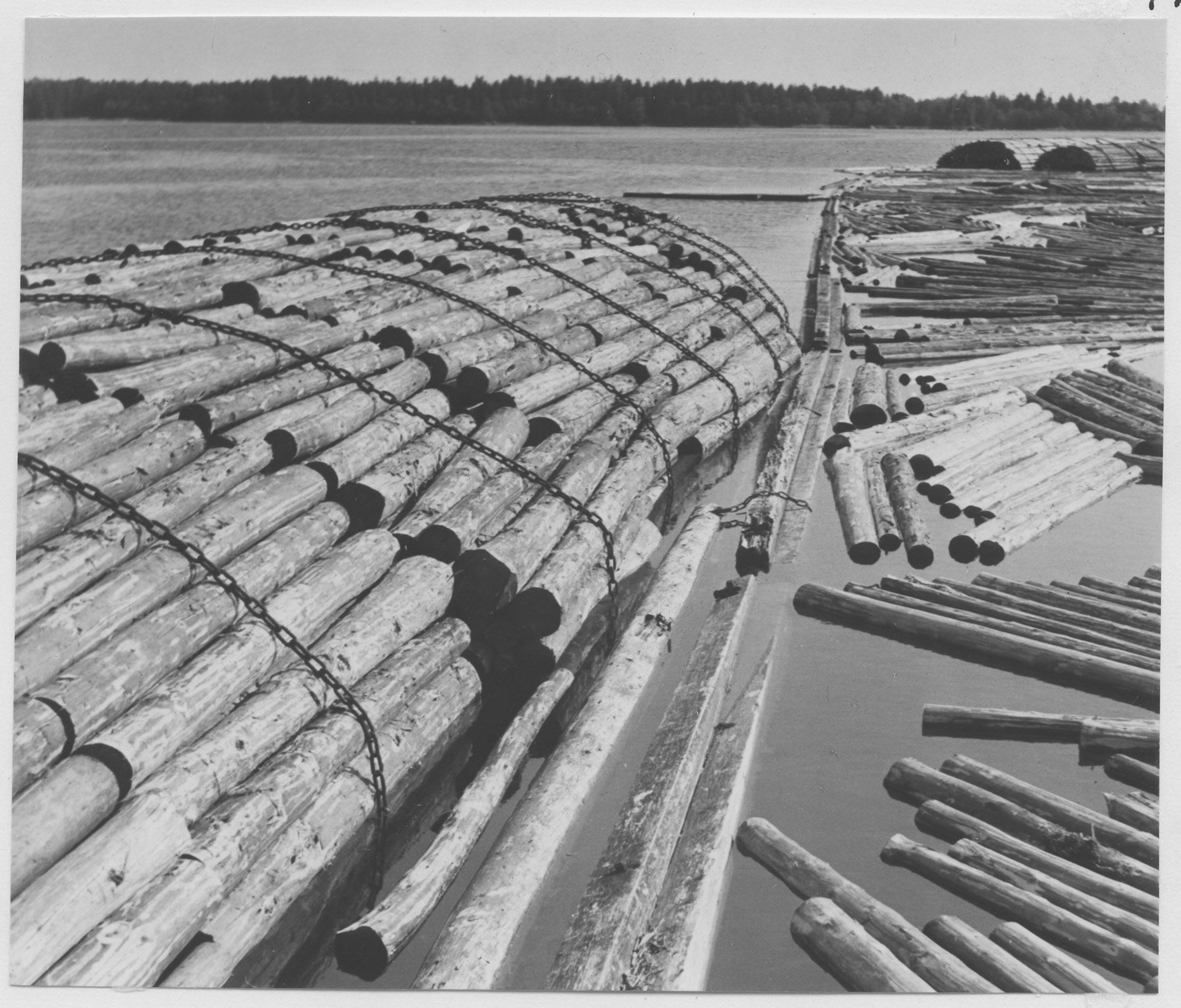 Beskrivning: Lastning av props (timmerlastning på båt).