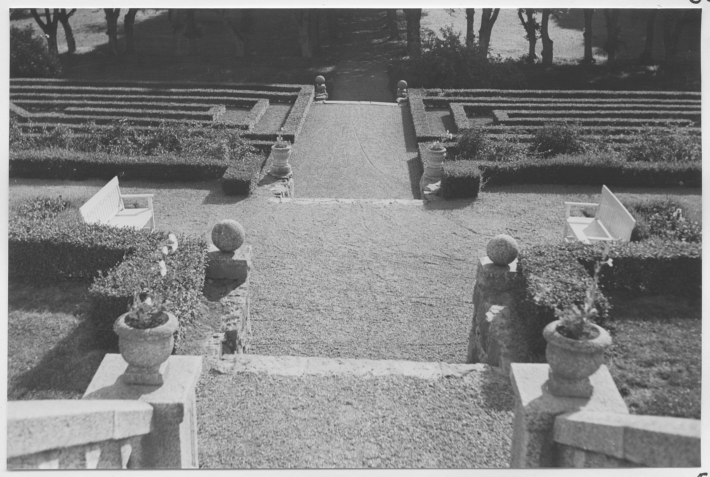 Beskrivning: Allé och stilträdgård.