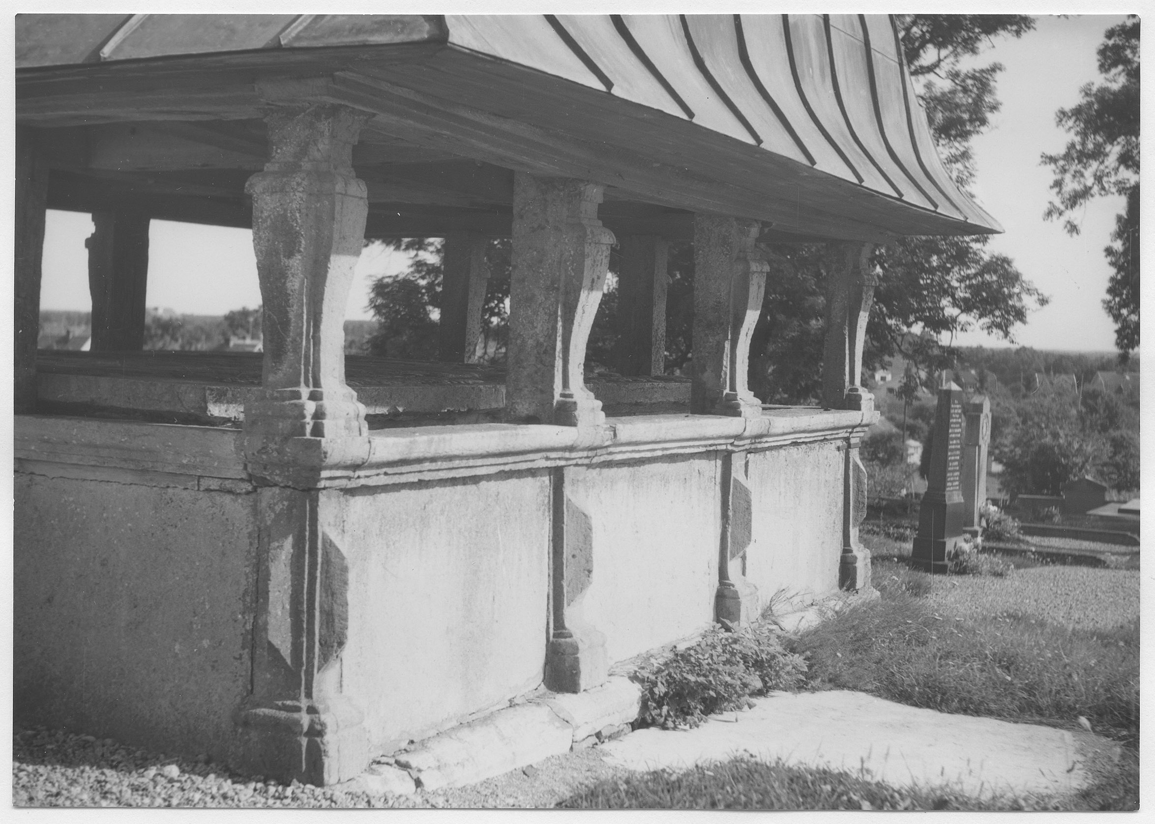 Beskrivning: Gravmonument över Bengt Larsson Hiärta. Till Åsaka. Uppfört 1644.