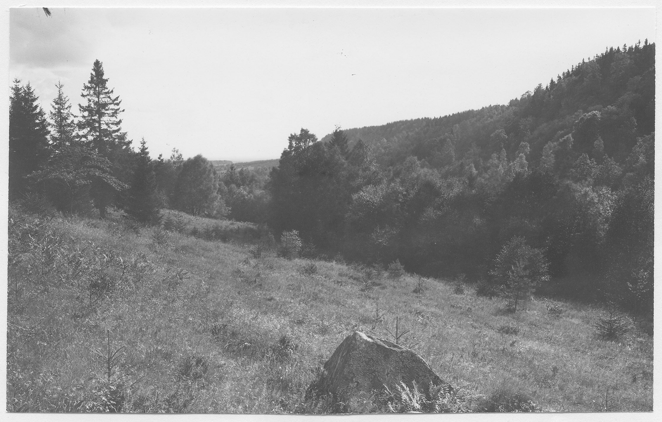 Beskrivning: Beskrivning: Mössebergs sydsluttning, gammal betesmark med planterad gran.
