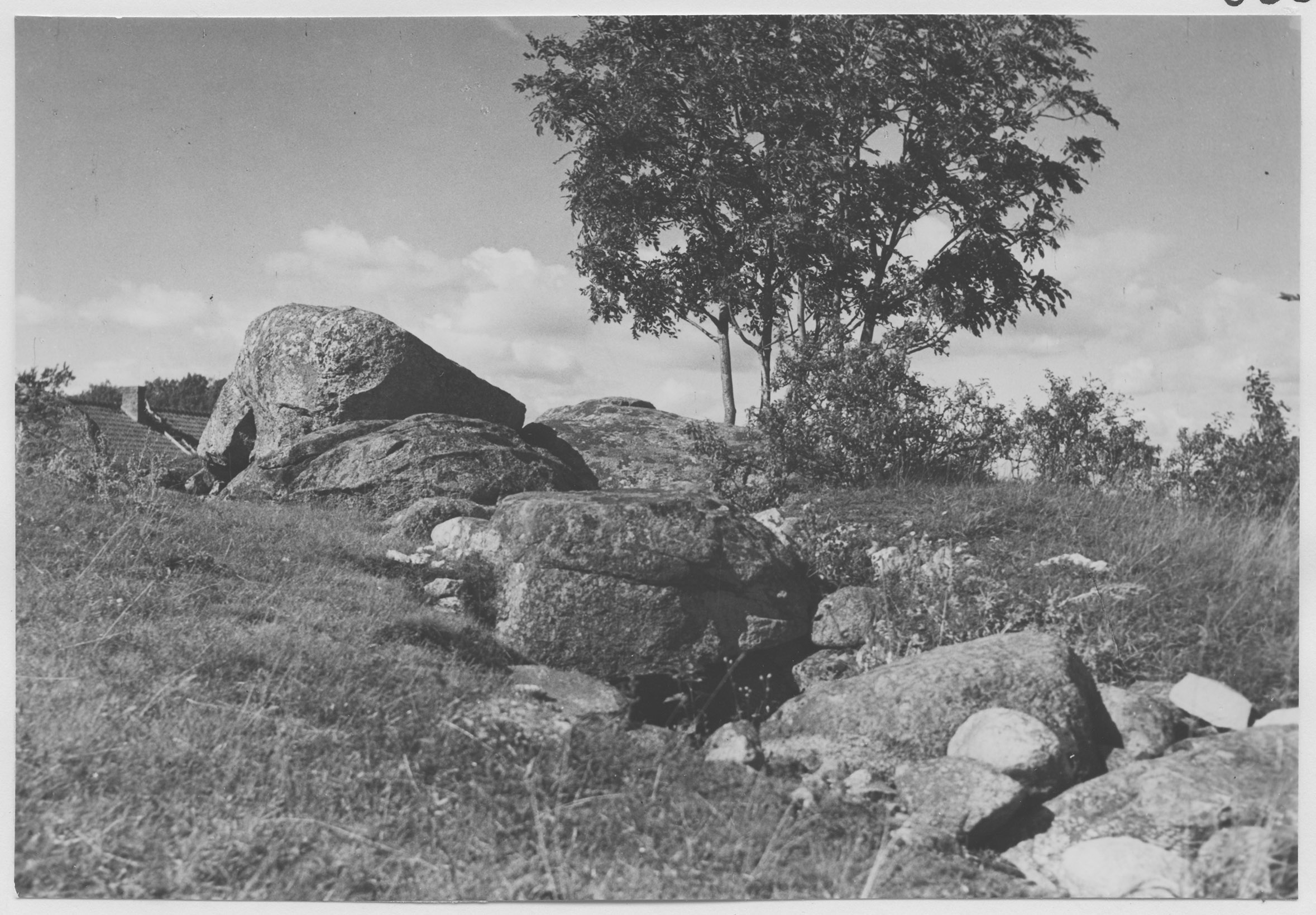 Beskrivning: Gånggrift, 3 kilometer söder om Resmo kyrka.