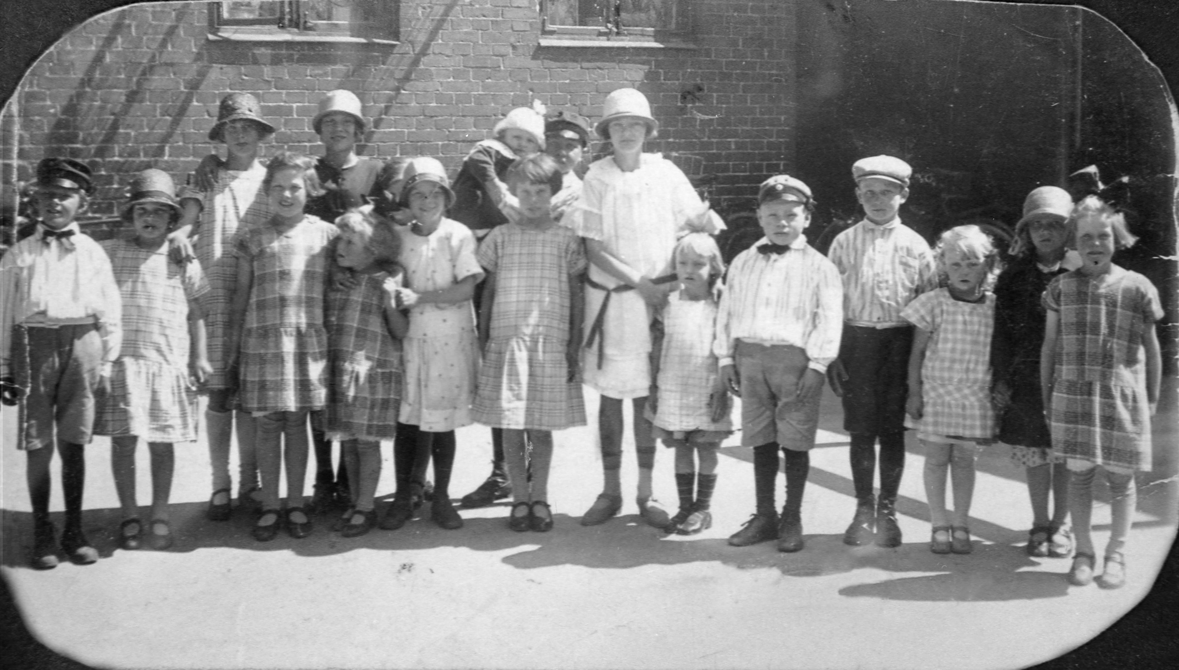 Gruppbild - barn på gården Hagagatan 17.