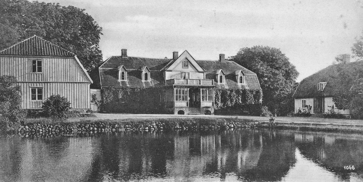 Brevkort stämplat 11 april 1903, "Susegården" samt notering "1 1/2 mil n. om Halmstad ngt s. om Fröllinge." Susegården ligger i Kvibille och Fröllinge slott i Getinge. Susegården ägdes i början av 1600-talet av två bröder Susse, från vilken den fått sitt namn. 1639 köptes den av Holger Rosenkrantz som var ägare till Glimmingehus i Skåne. Här ses mangårdsbyggnaden med flyglar ligga vid en damm. Byggnaderna har alla valmade mansardtak, där nedre takfallet på huvudbyggnden fått fyra smala takkupor. Entrén är försedd med en bred veranda med balkong ovanpå. Bild 2 visar kortets hälsning till fröken Sally Nyman i Heberg.