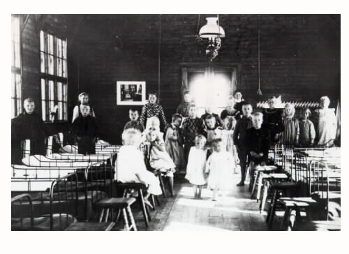 Kustsanatoriet Apelviken. Personal och patienter i 1:a paviljongen fotograferade år 1905.