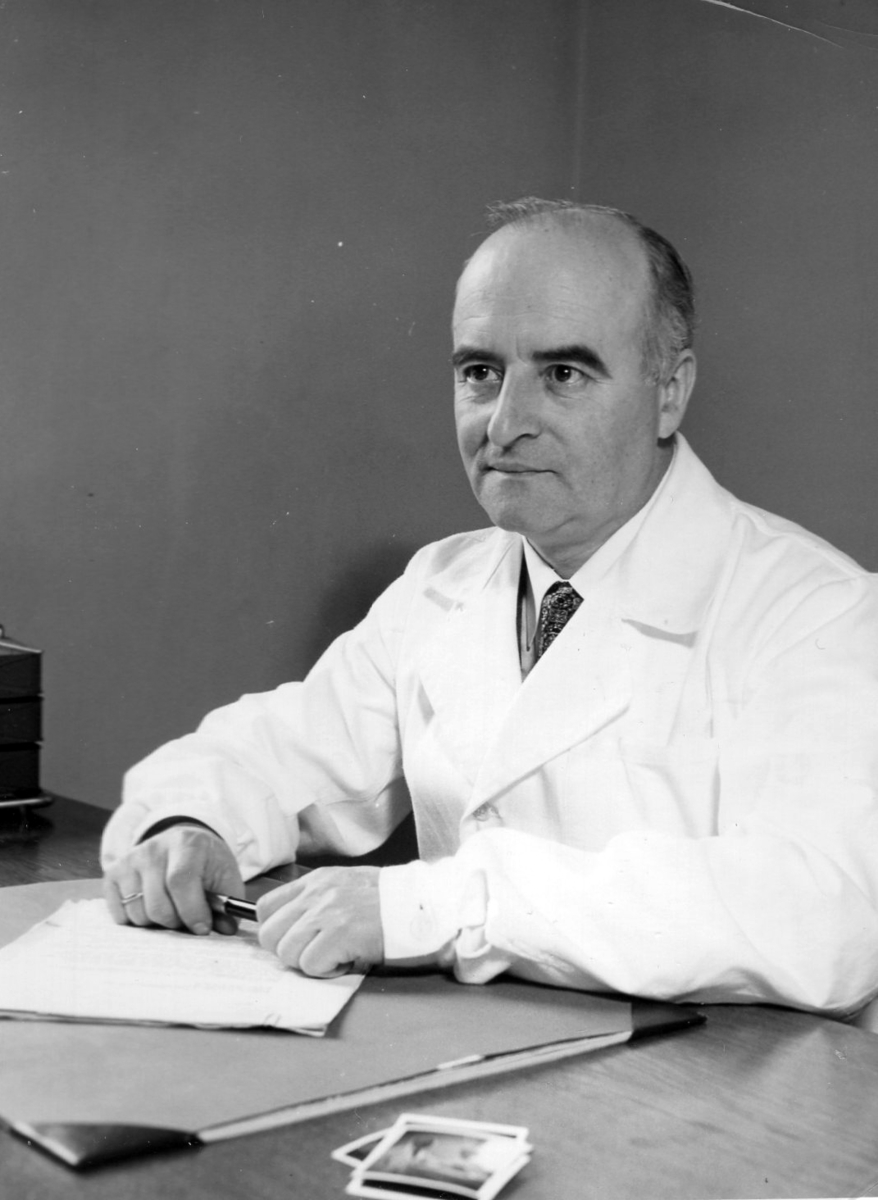 Underläkare Vassili Vahnre sittande vid sitt skrivbord på Kustsanatoriet Apelviken.