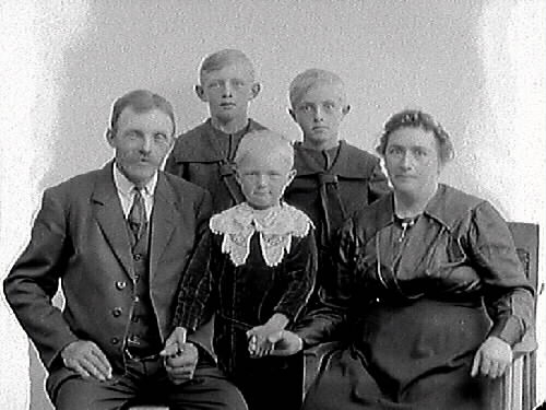 Familjen Bernandersson i Åkraberg, Stråvalla. Föräldrar med tre söner. 4 bilder varav nr 2-3 endast är på sönerna.