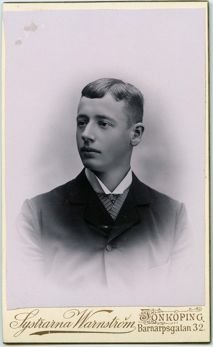 Porträtt på E. Andersson Styrman. Född 1874-09-15 och död 1899-05-24 i gula febern i Bahia.