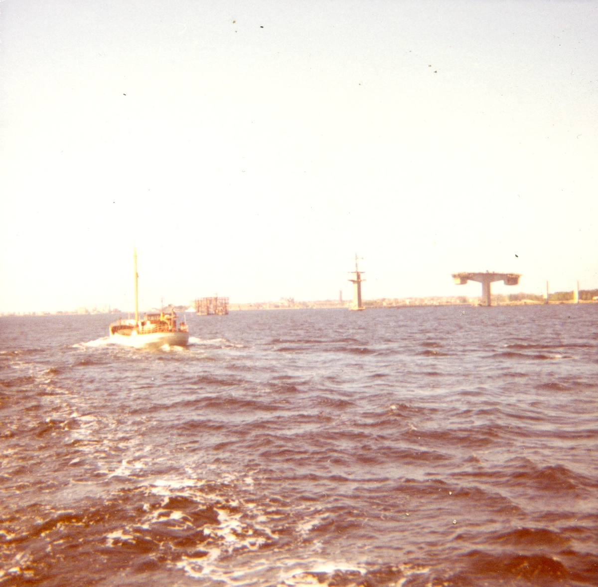 Ritt av Hamburg. Kalmarsund, 25 maj. I bakgrunden är Ölandsbron under byggnad.