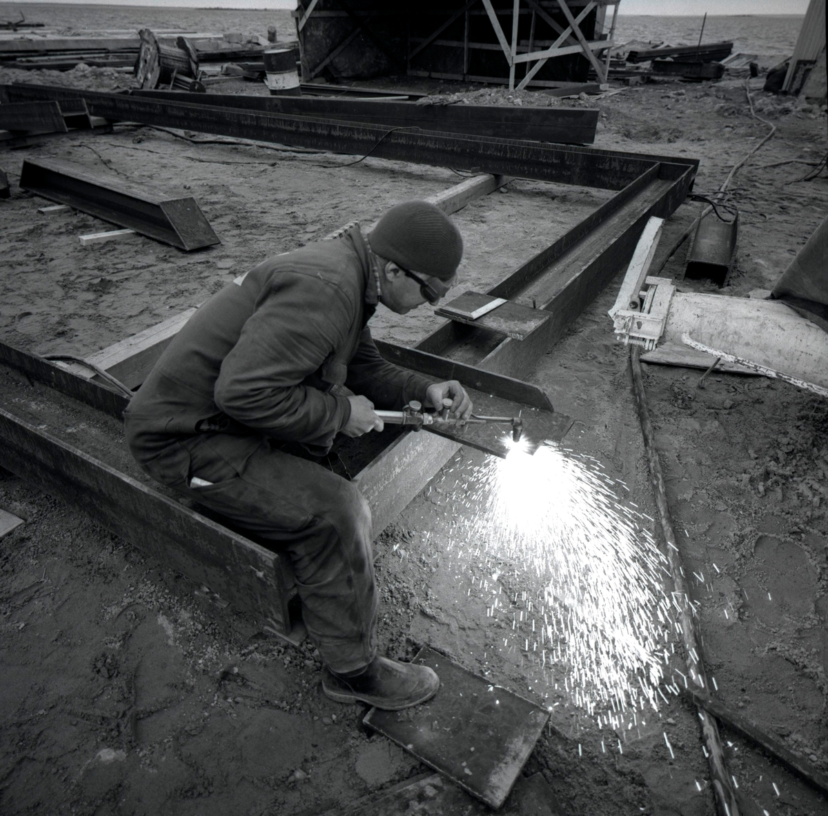 Svetsningsarbete vid byggandet av Ölandsbron.