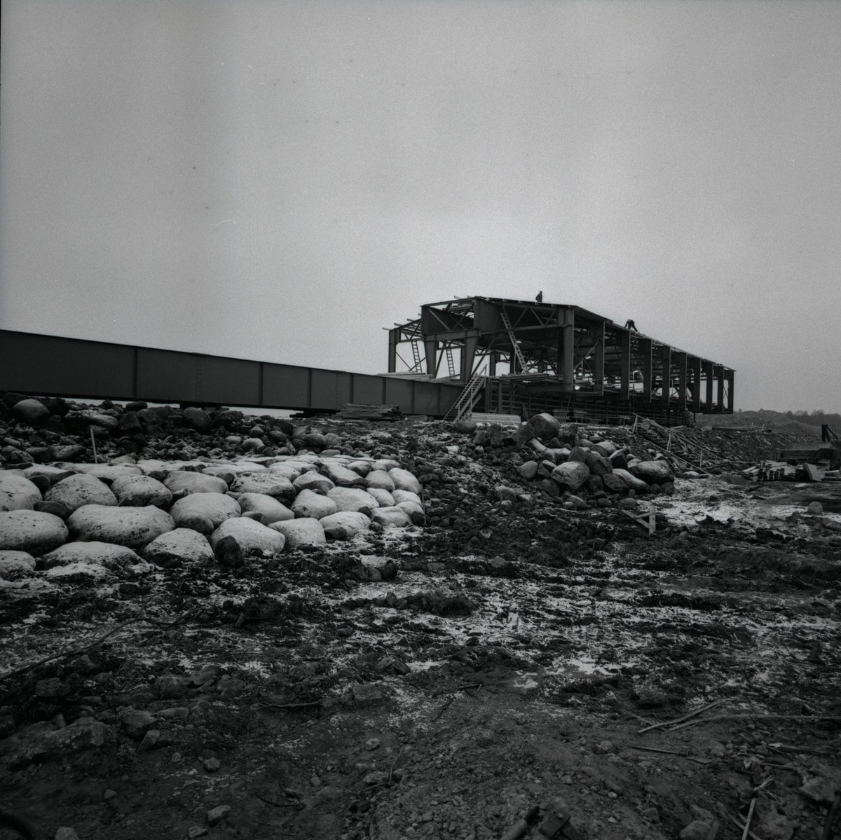 Från byggandet av Ölandsbron. All gjutning skedde under tak.