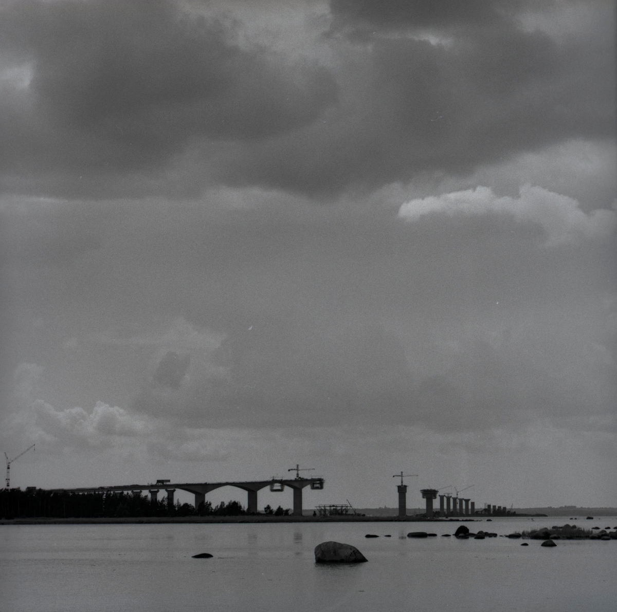 Vy från byggandet av Ölandsbron. Svinö till vänster i bild.