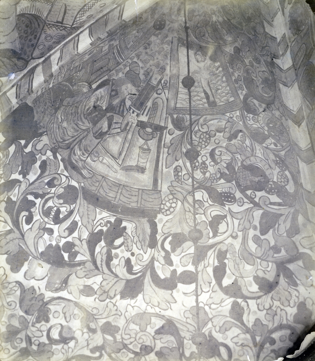 Dalhems kyrka innan 1874. Renässansmålningar i kryssvalven.