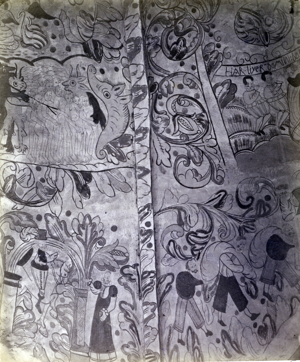 Dalhems kyrka innan 1874. Renässansmålningar i kryssvalven.