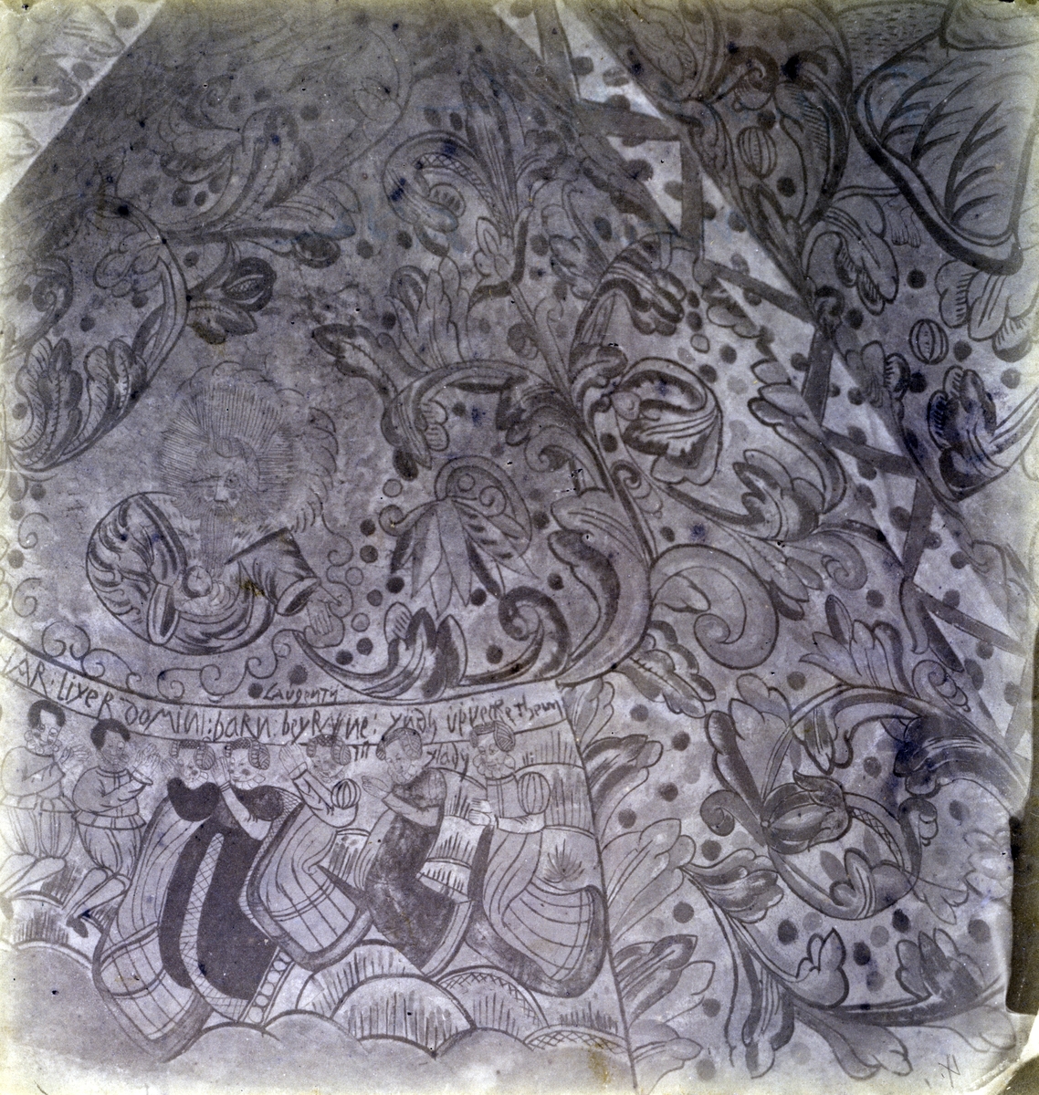 Dalhems kyrka innan 1874. Renässansmålningar i kryssvalven.