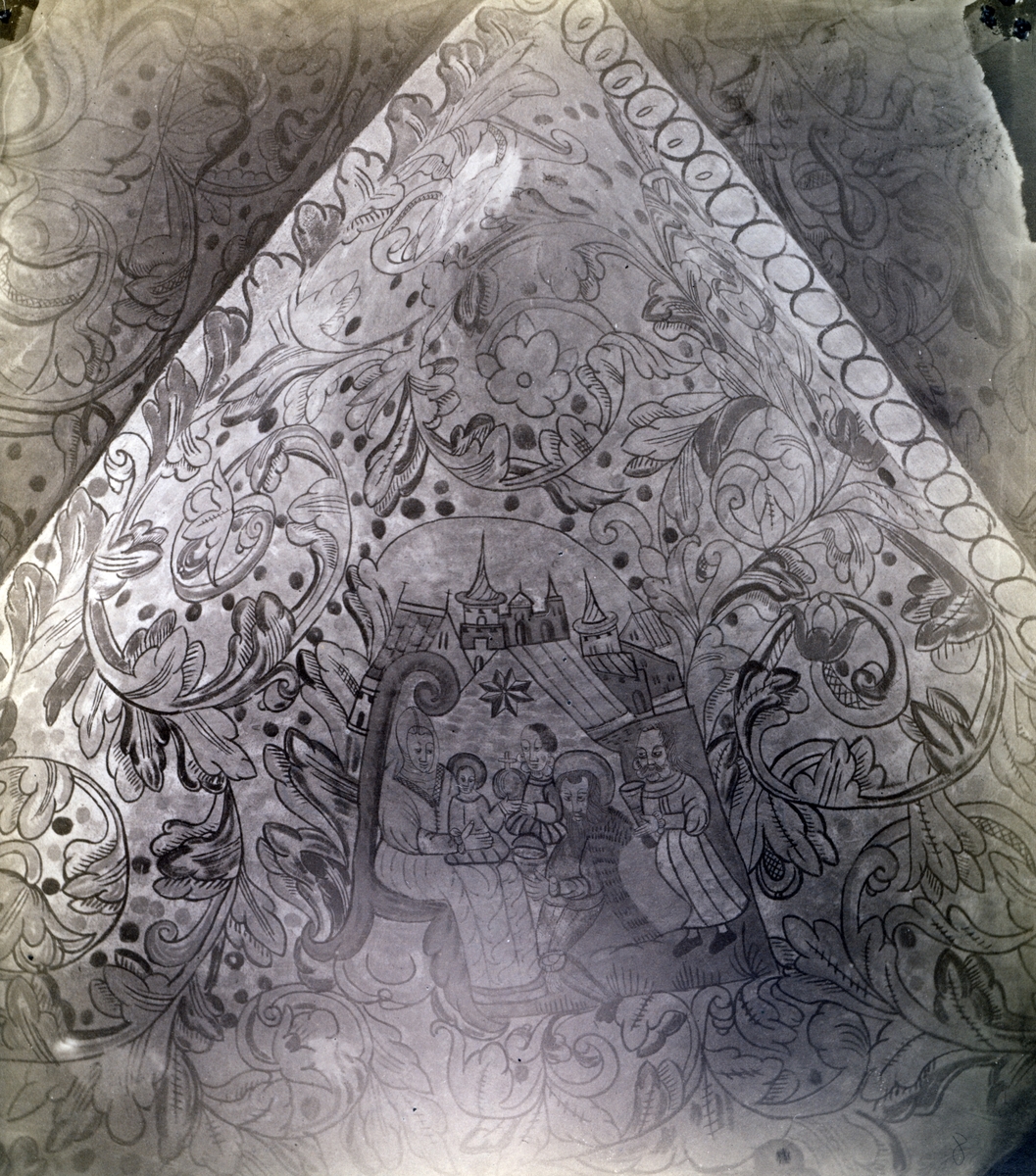 Dalhems kyrka innan 1874. Renässansmålningar i kryssvalven.