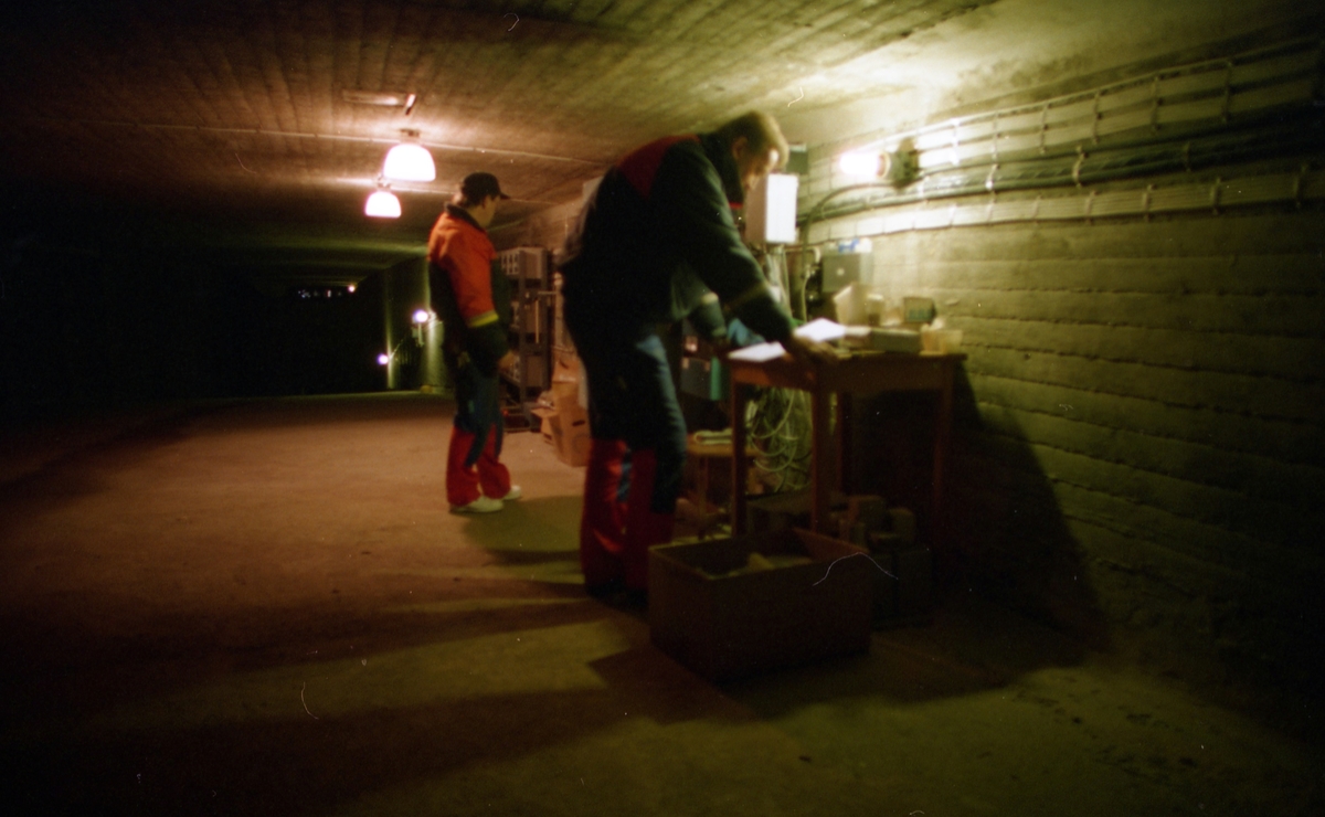 Kontroll av fyrljus inne i högbrodelen under körbanan, utförd av Kalmar Energi.