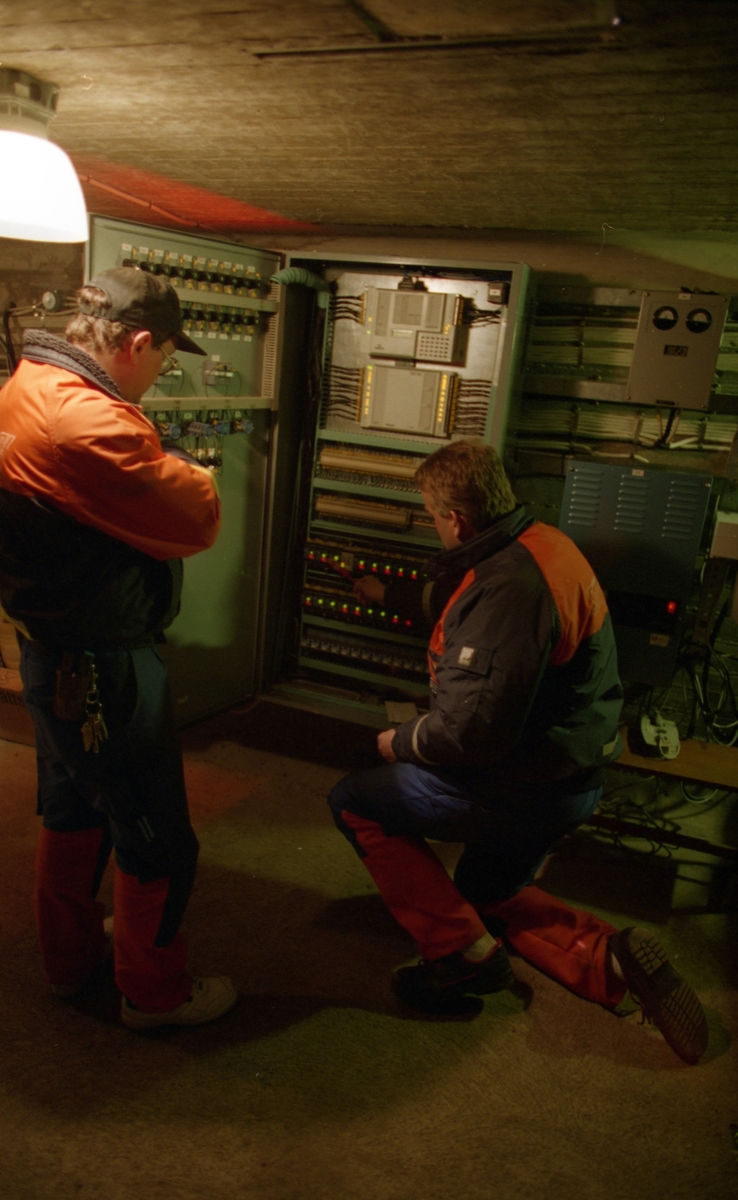Kontroll av fyrljus inne i högbrodelen under körbanan, utförd av Kalmar Energi.