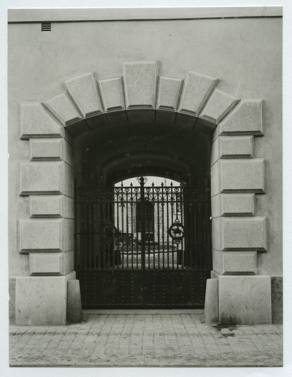 En portal med grind i kv Rådmannen. Förmodligen året 1908.