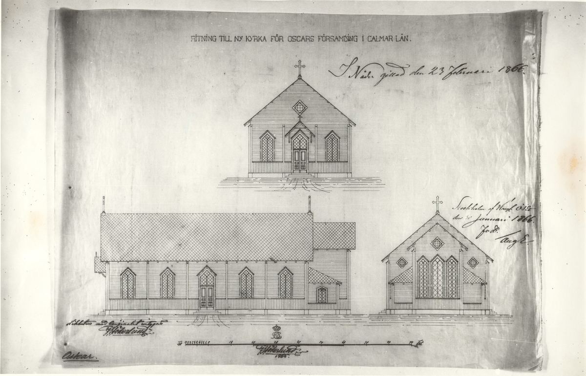Ritning till ny kyrka för Oscars församling i Calmar län.
