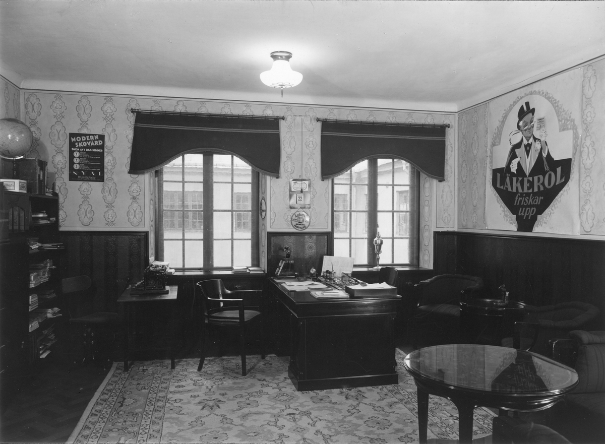 Reklamchefens rum vid F. Ahlgrens Tekniska fabrik i Gävle, omkring 1935.