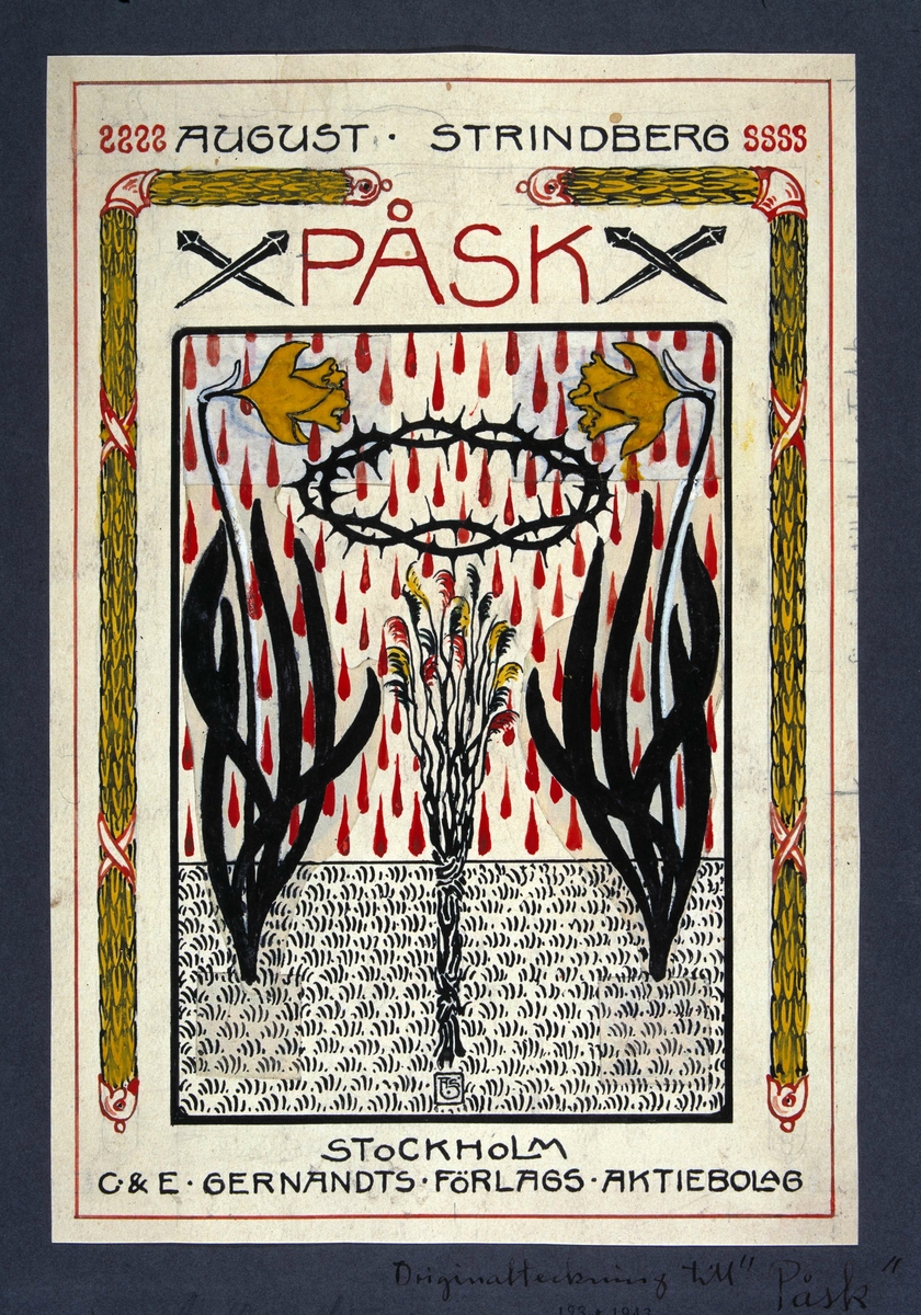 Originalteckning till bokomslag till August Strindbergs “Påsk” av Arthur Sjögren.