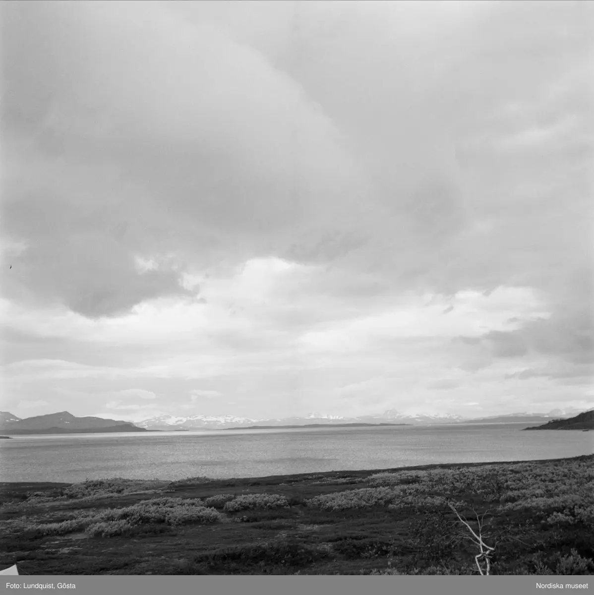 Vy över vatten med fjäll på andra sidan, Sulitelma.